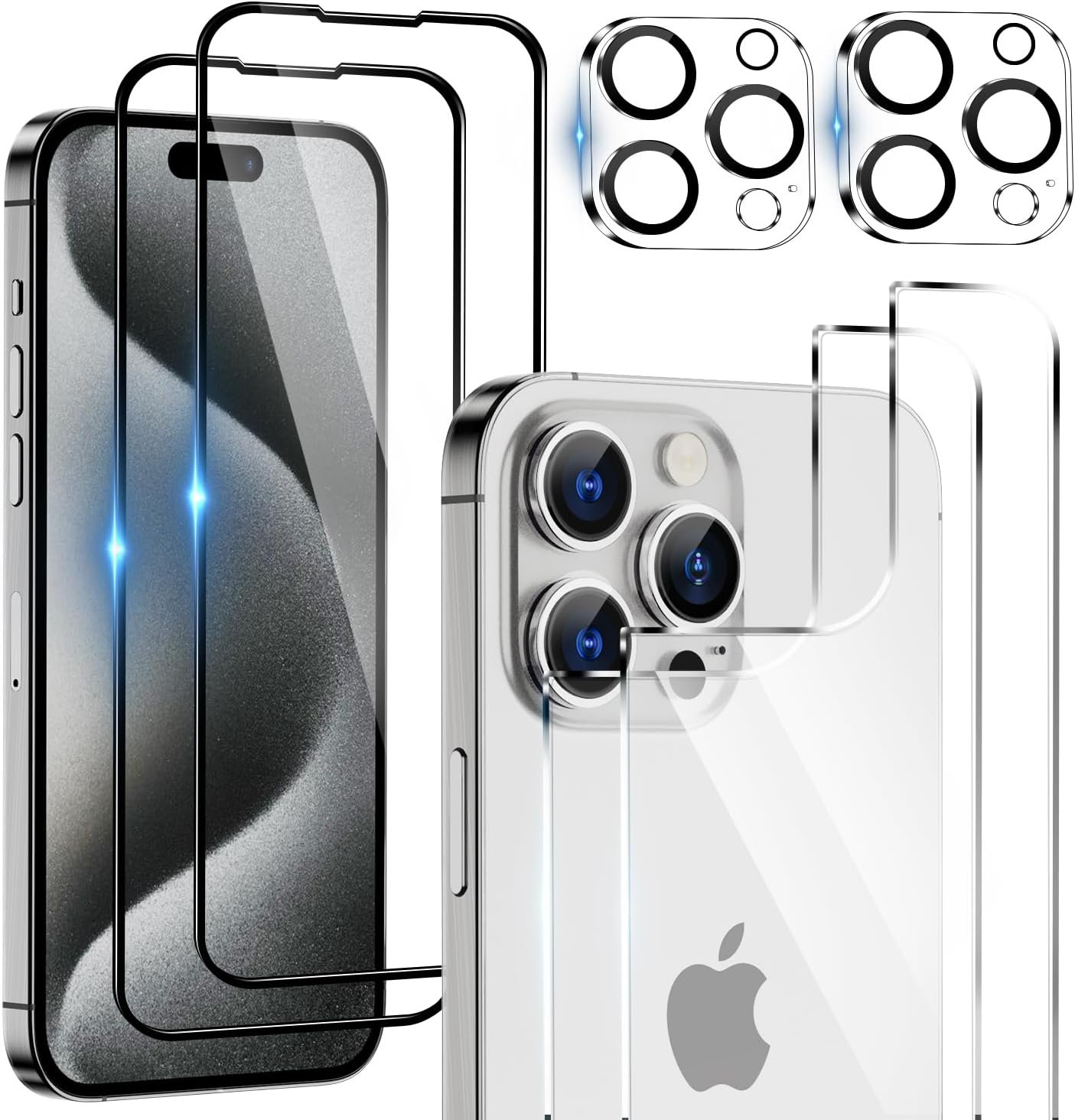 Designed for iPhone 15 Pro Max Phone Screen Protector: Super High-Definition Tempered Glass 2 Pack Front and Back Screen Protector and 2 Pack Camera Lens Protector for iPhone 15 Pro Max (6.8 inches, 2023 Release).