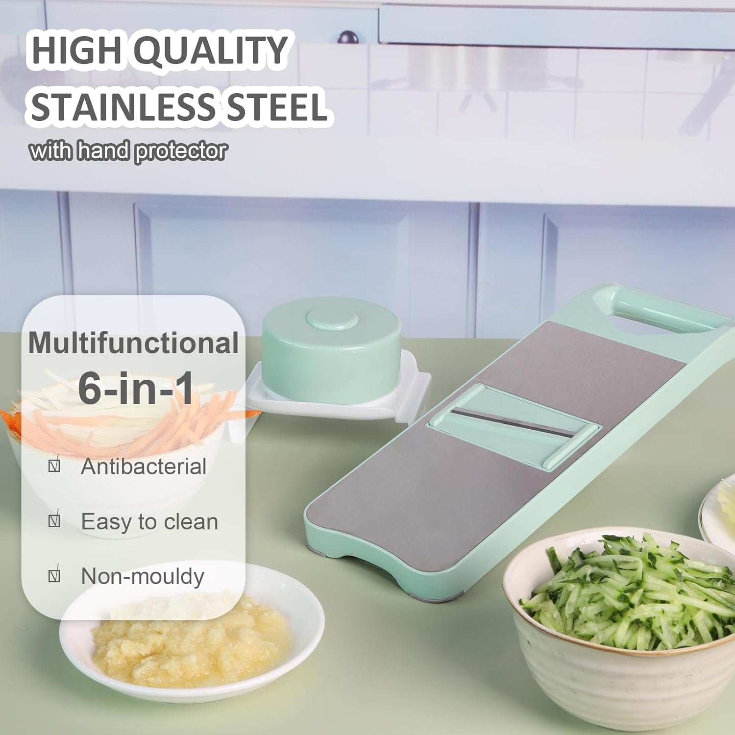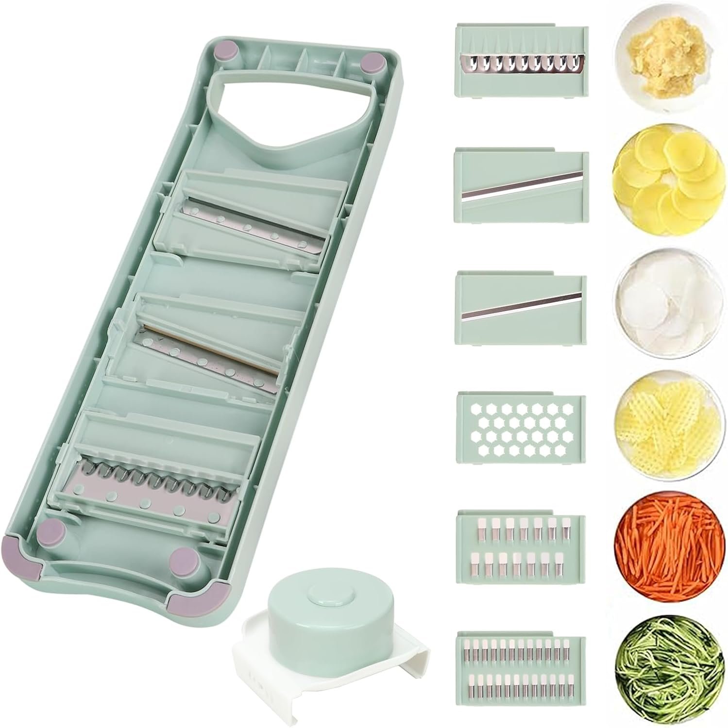 ULUOMANN 6 in 1 Mandoline Slicer for Kitchen Multi Functional Grater Multi Blade Cutter Julienne Shredder Vegetable Slicer for Potato Chip Veggie Avocado Green