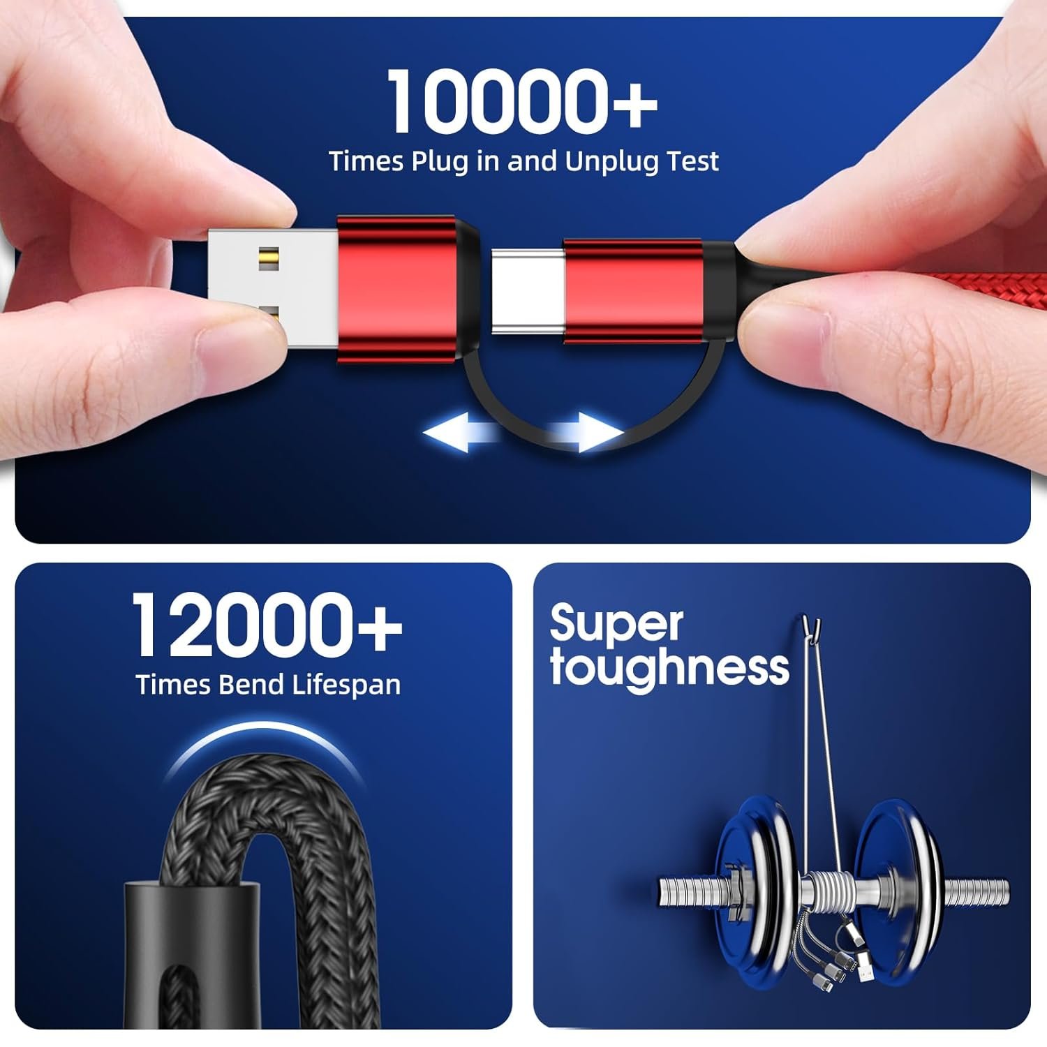 【Super Durability & Tangle-Free】Braided nylon multi charger cable is built to last, with high-quality nylon braided material and aluminum alloy connectors. The multi USB charging cable boasts over 12,000+ bend lifespan, making it more durable and resistant to heat and corrosion, ensure a longer service life.