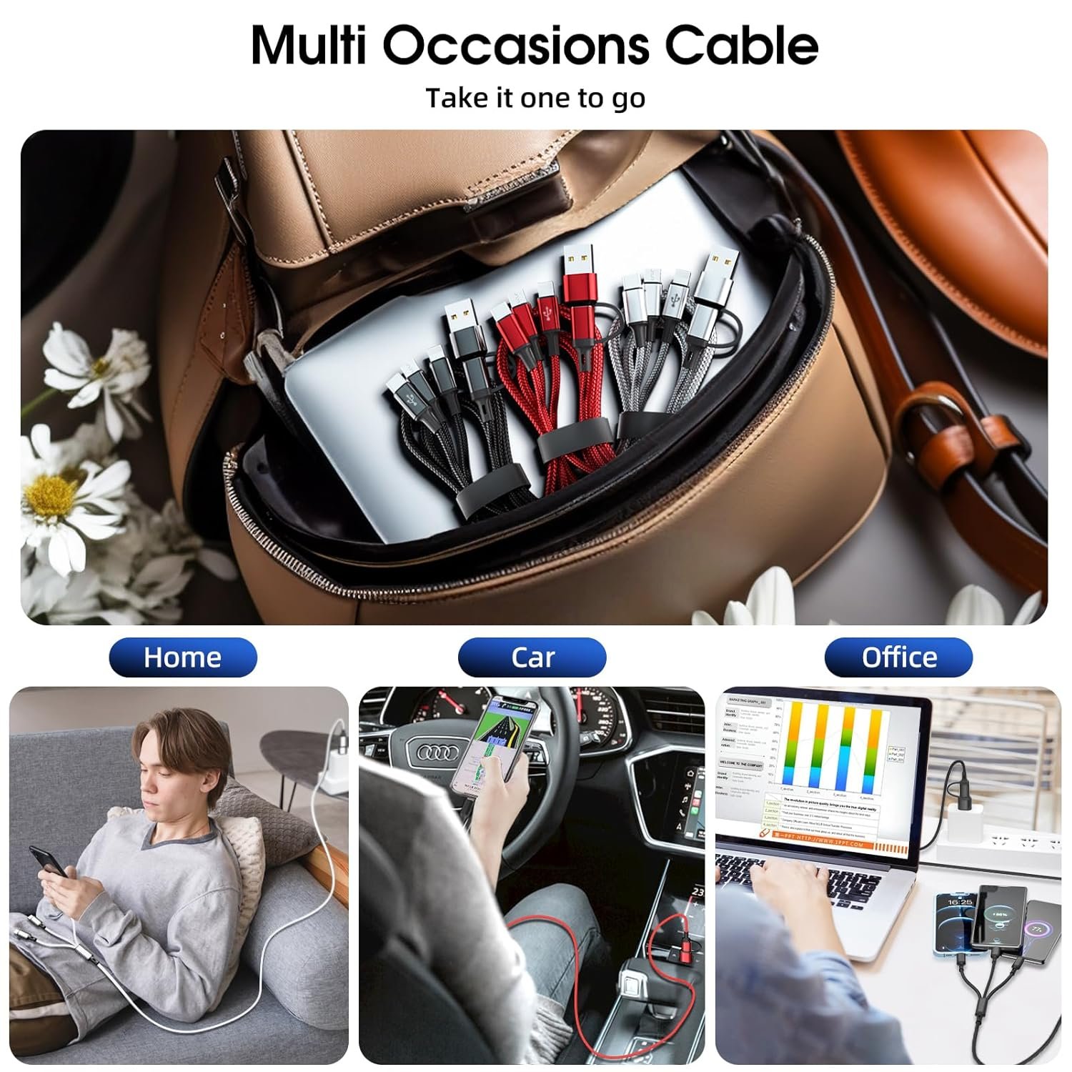 【Convenient and Portable】Ideal length 4Ft/1.2M is optimal to use in home, office, car, traveling & more. Nylon braided 6-in-1 Charger Cable is very easy to fold and place in your handbag, laptop bag, pocket etc. The multi connectors allow you to enjoy videos, games, chat. Charging multi device at the same time, without the clutter of multiple cables.