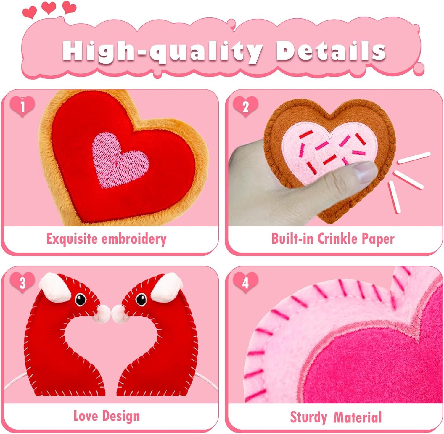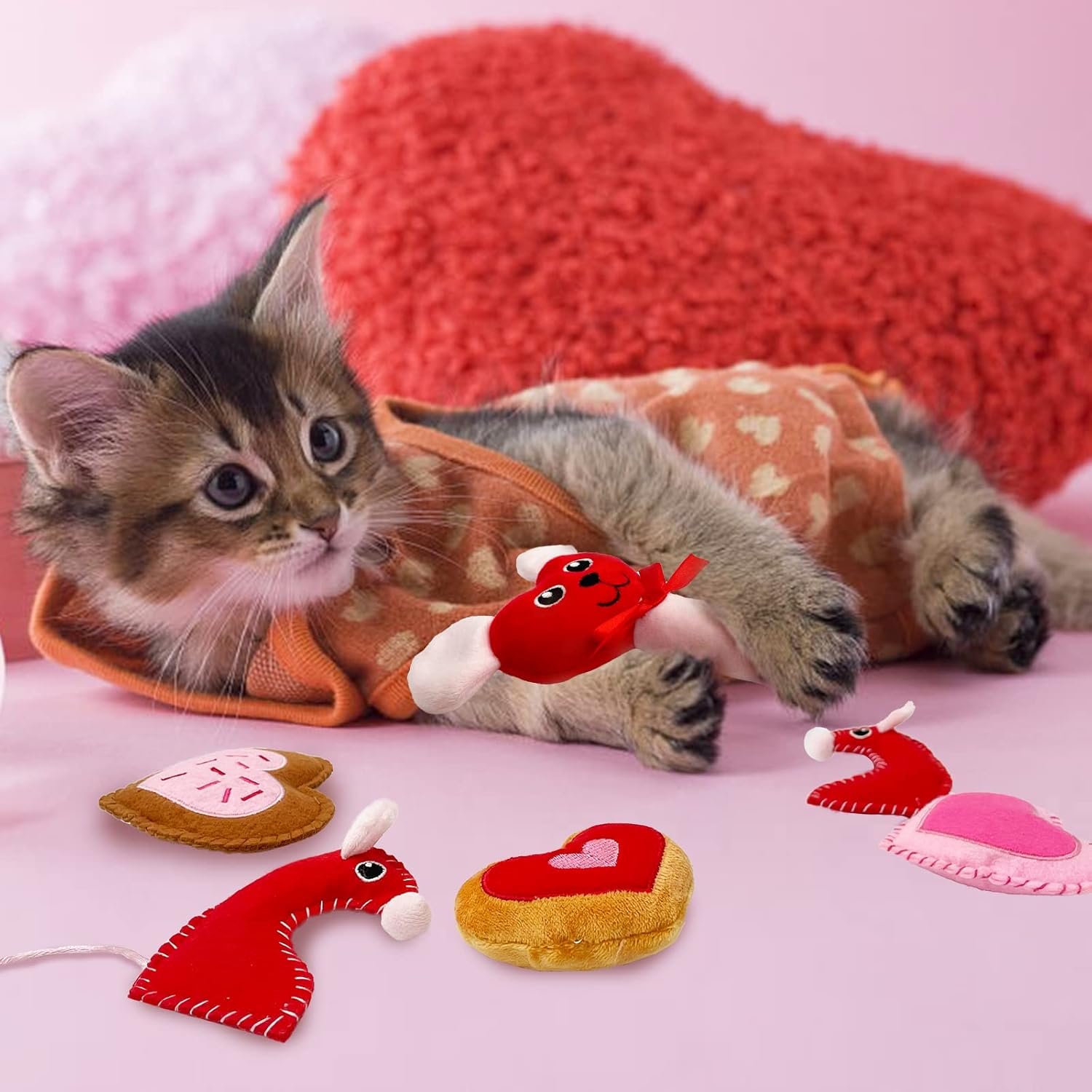 Cat Nip Toys: Catnip add in the valentines day cat toys, attract kitten’s attention. Meet the needs of cats and relieve boredom and may help with anxiety. Allowing your cat to clean its teeth while chewing and playing.