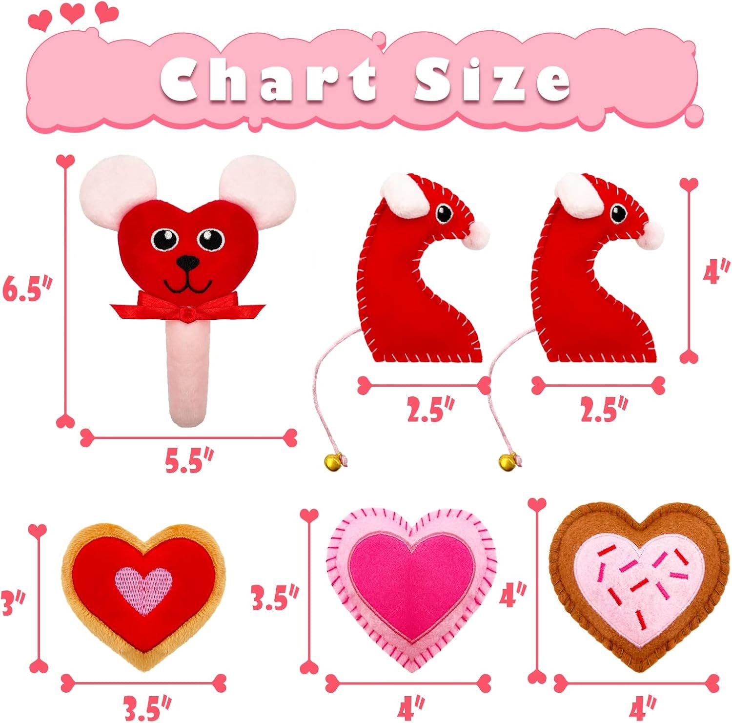 Super Value: The valentines day cat toys Includes 4 heart catnip toys with crinkle and 2 mice bells catnip toys. Best cat toys!