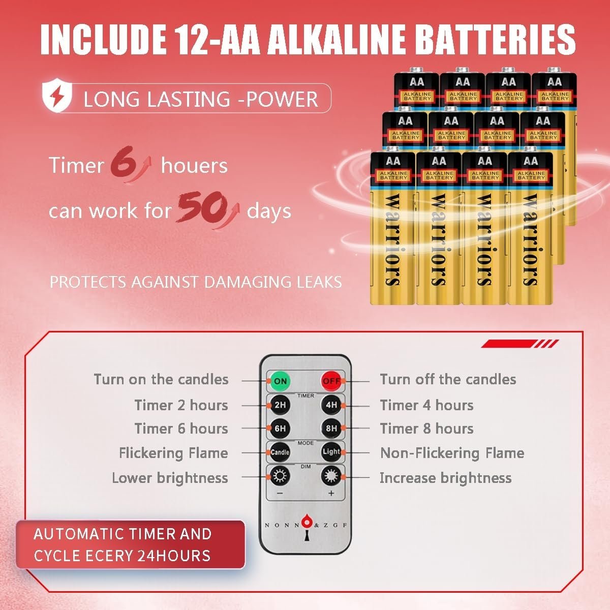 Each candle requires 2 AA batteries, 12 in total(inlude).