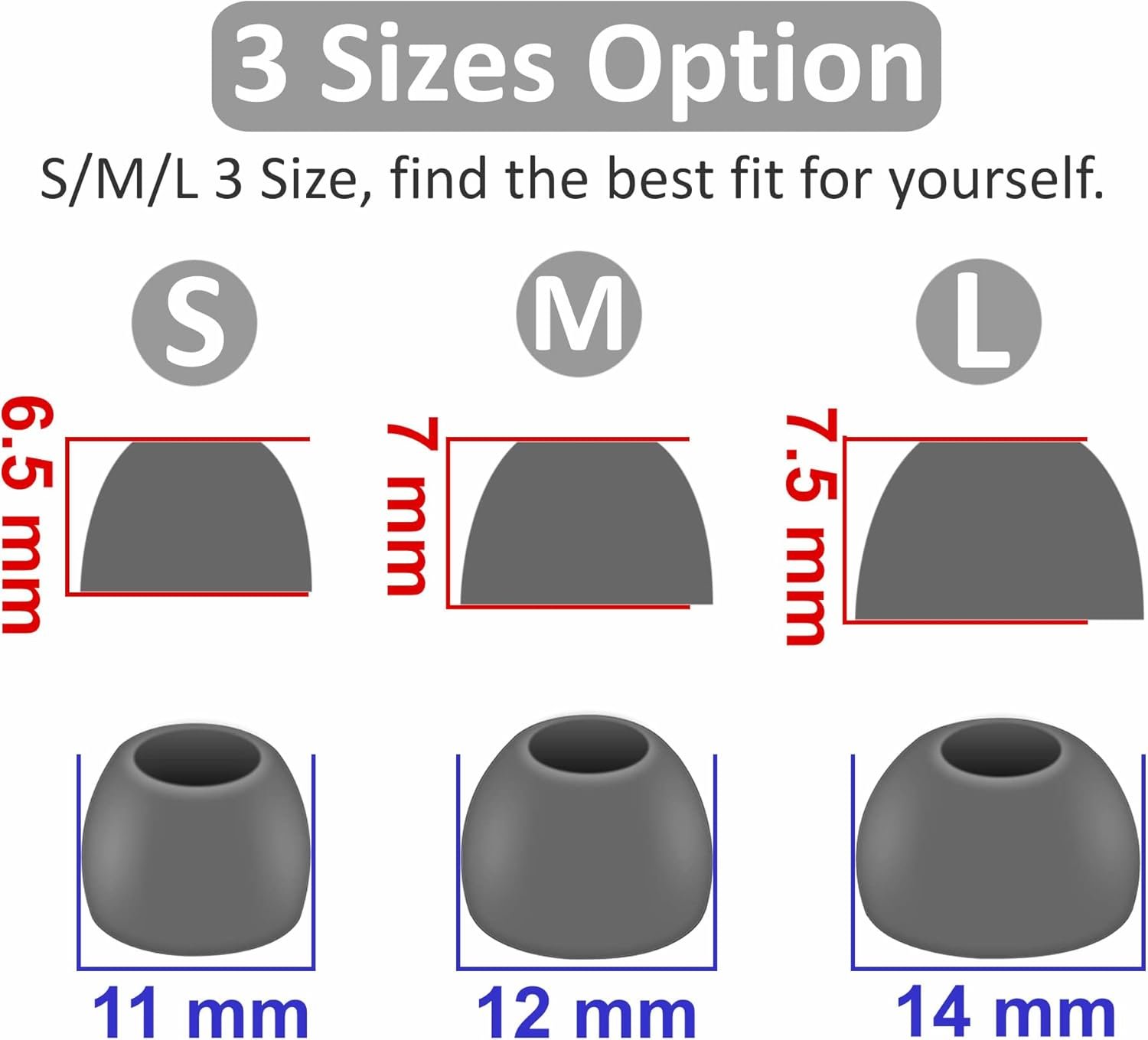 【 More Size Options, Better Fit 】 Small Medium Large 3 different sizes, complies comfortably with your individual ear shape. Fit in the charging case, no need to remove the foam when you put earphone into the charging case. Ear tips only, earphone and charging case NOT included.