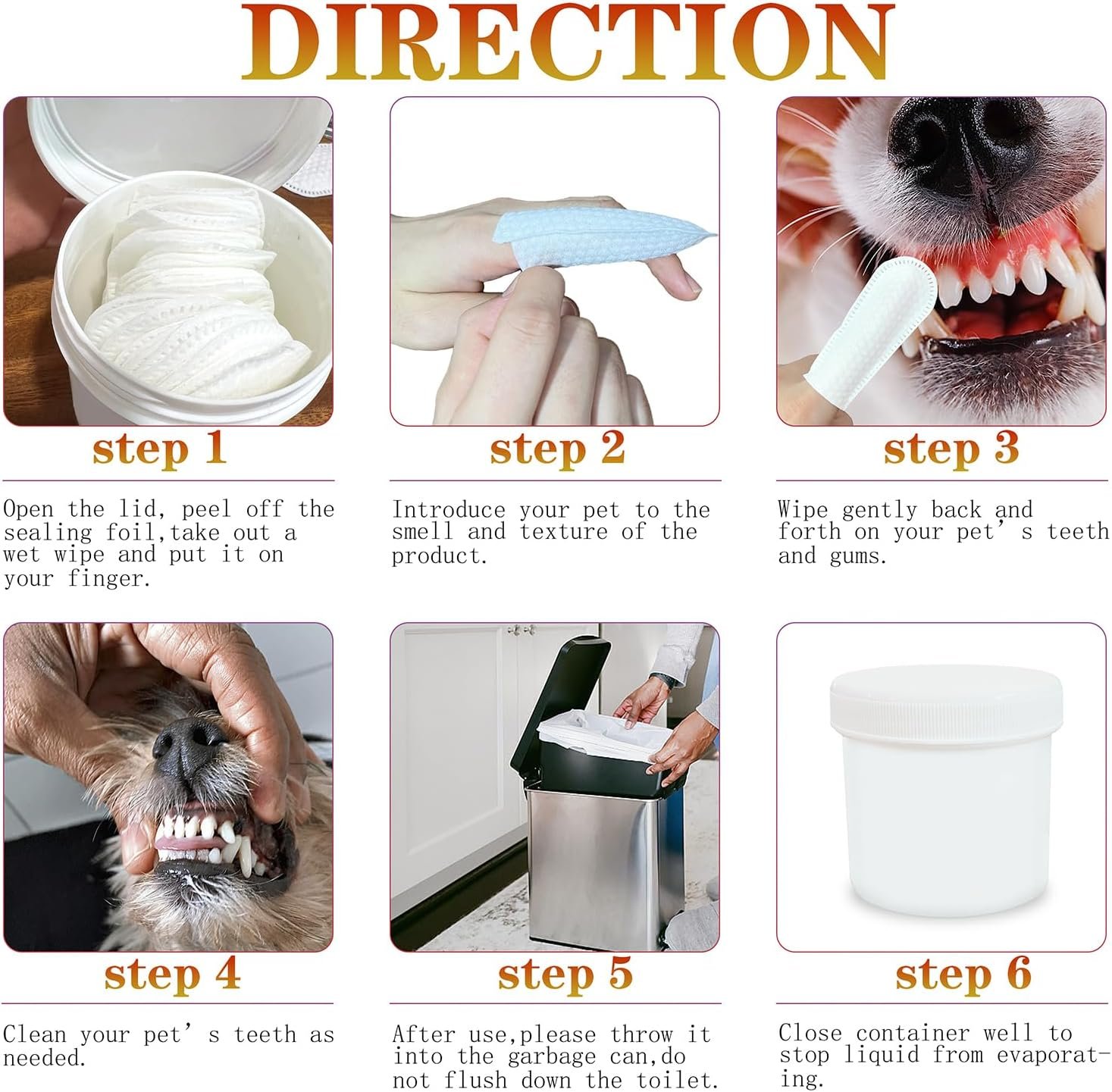 Extensive Use: Our dog finger toothbrush cleaning wipes can not only be used for dogs, but also be used for cats, rabbits, and other pets.