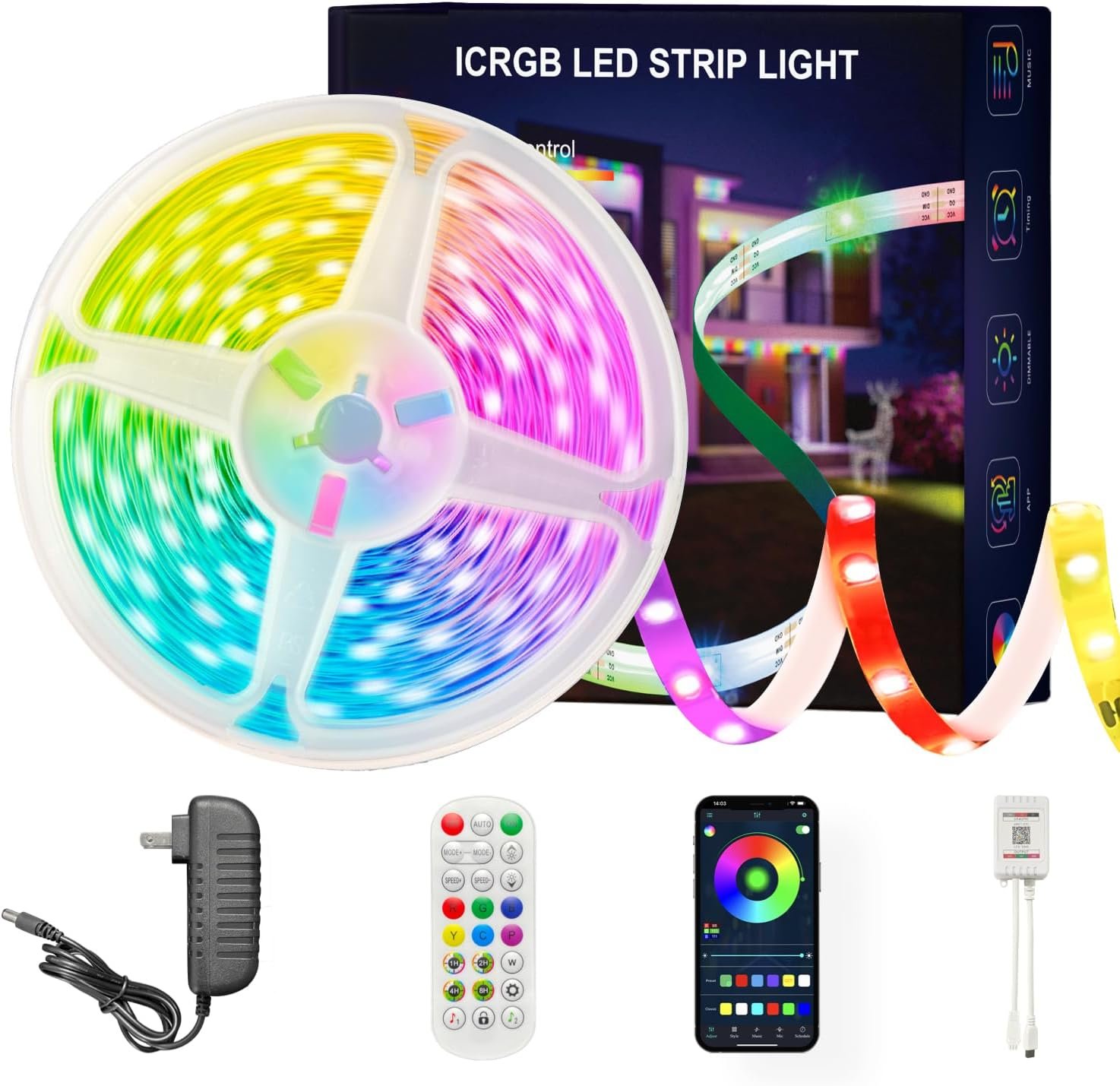 Timing and Scheduling: You can schedule the smart LED strip to switch on and off automatically via the mobile app, as well as set a countdown timer, set the Wifi LED lights to turn on and off at specific times, turn all the lights on when you come home, and turn all the lights off when you leave home.