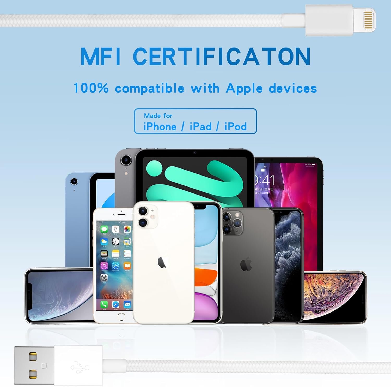 【Compatible for iPhone】MFi Certified iPhone charging cable ensures complete compatibility with iPhone 14 Pro Max /14 pro/14/14 Plus, iPhone 13 Pro Max /13 Pro /13 /13 Mini, iPhone 12 Pro Max /12 Pro /12 /12 Mini, iPhone 11/ 11 Pro / 11 Pro Max, iPhone 8 / 8 Plus/ 7 / 7 Plus/6/6 Plus, iPhone 5S/5C/5/SE, iPhone X / XR / XS / XS Max, etc