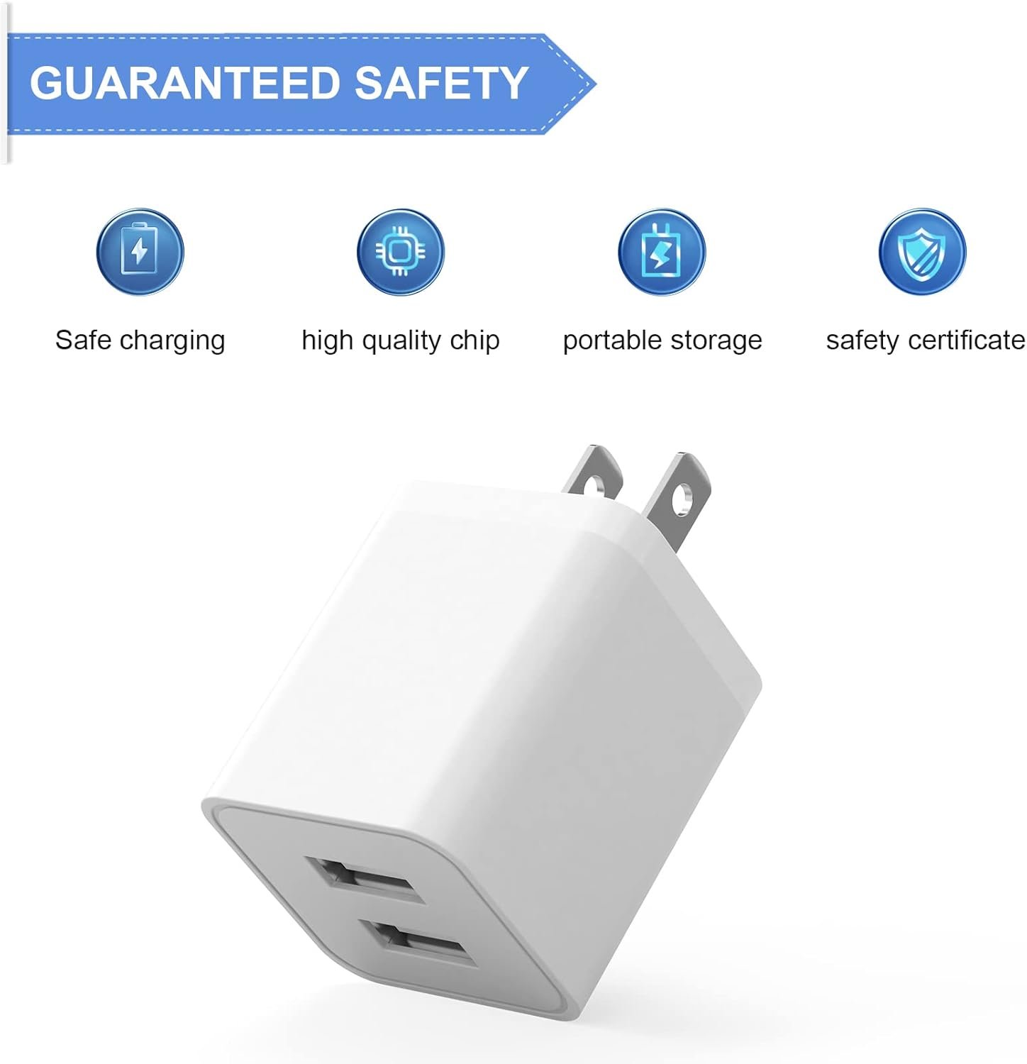 6Pack USB Wall Charger, iGENJUN 2.4A Phone Charger Dual USB Port Cube Power Plug Adapter Fast Wall Charger Block Compatible with iPhone 16/16 Pro/15/15 Pro, Samsung Galaxy, Pixel, LG, Android-White