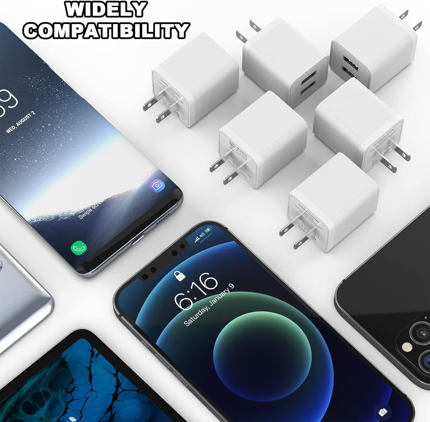 Universal Compatibility: 6 Pack USB charger block matches all USB A cable cords or your phones. Like iPhone 16/16 Plus/16 Pro/16 Pro Max, iPhone 15/15 Plus/15 Pro/15 Pro Max, iPhone 14/14 Plus/14 Pro/14 Pro Max, iPhone 13/13 Mini/13 Pro/13 Pro Max/SE, iPhone 12/12 Pro/XR/X/8/7/6/6s, Samsung Galaxy, Android, Motorola, LG, Nexus, Oneplus, HTC and more devices