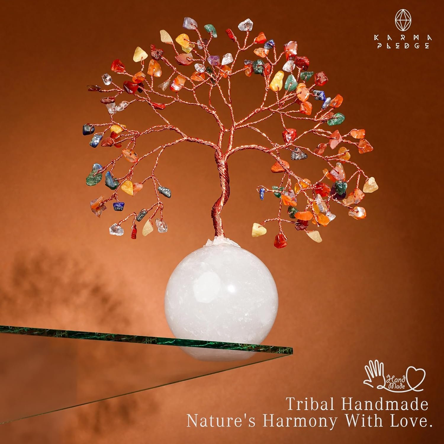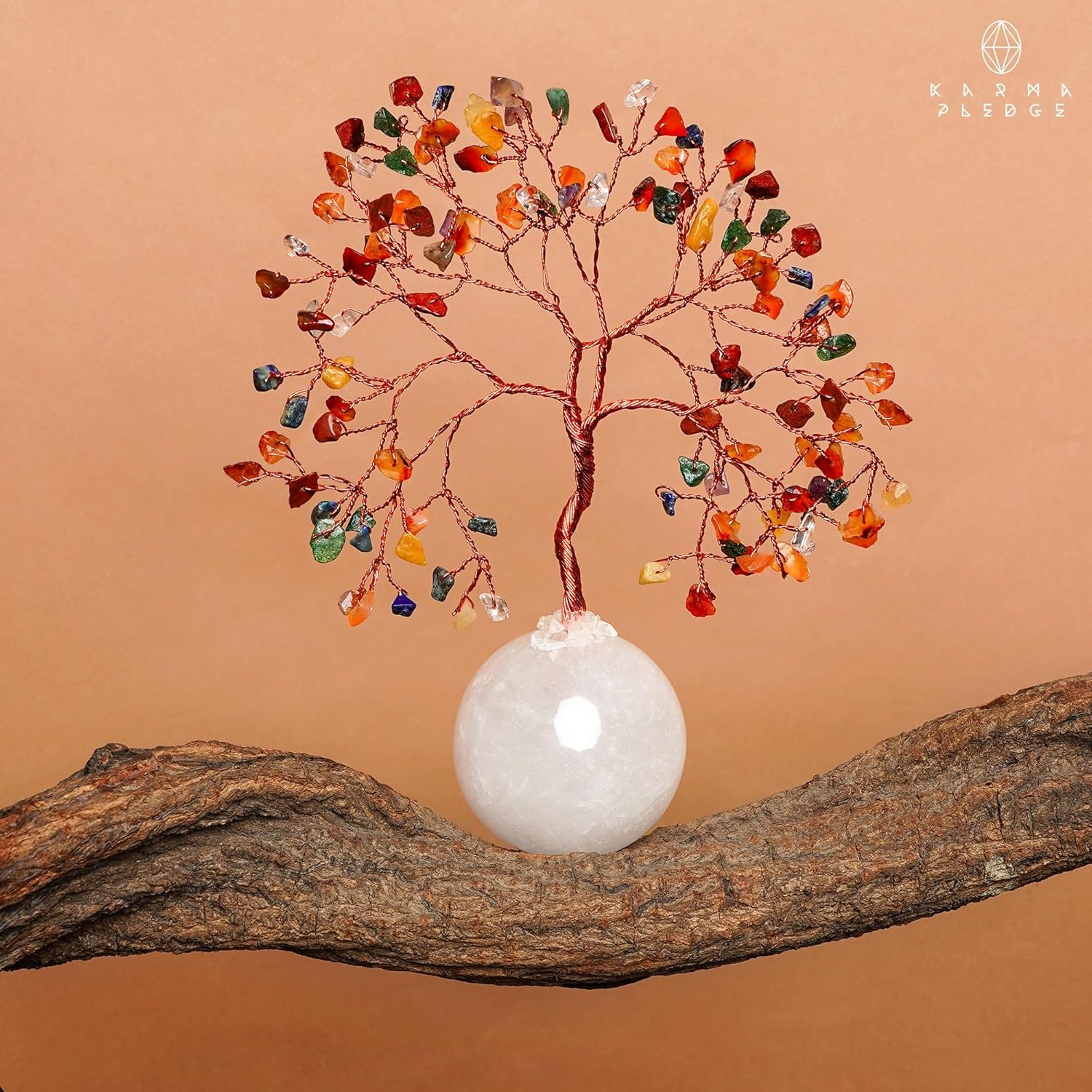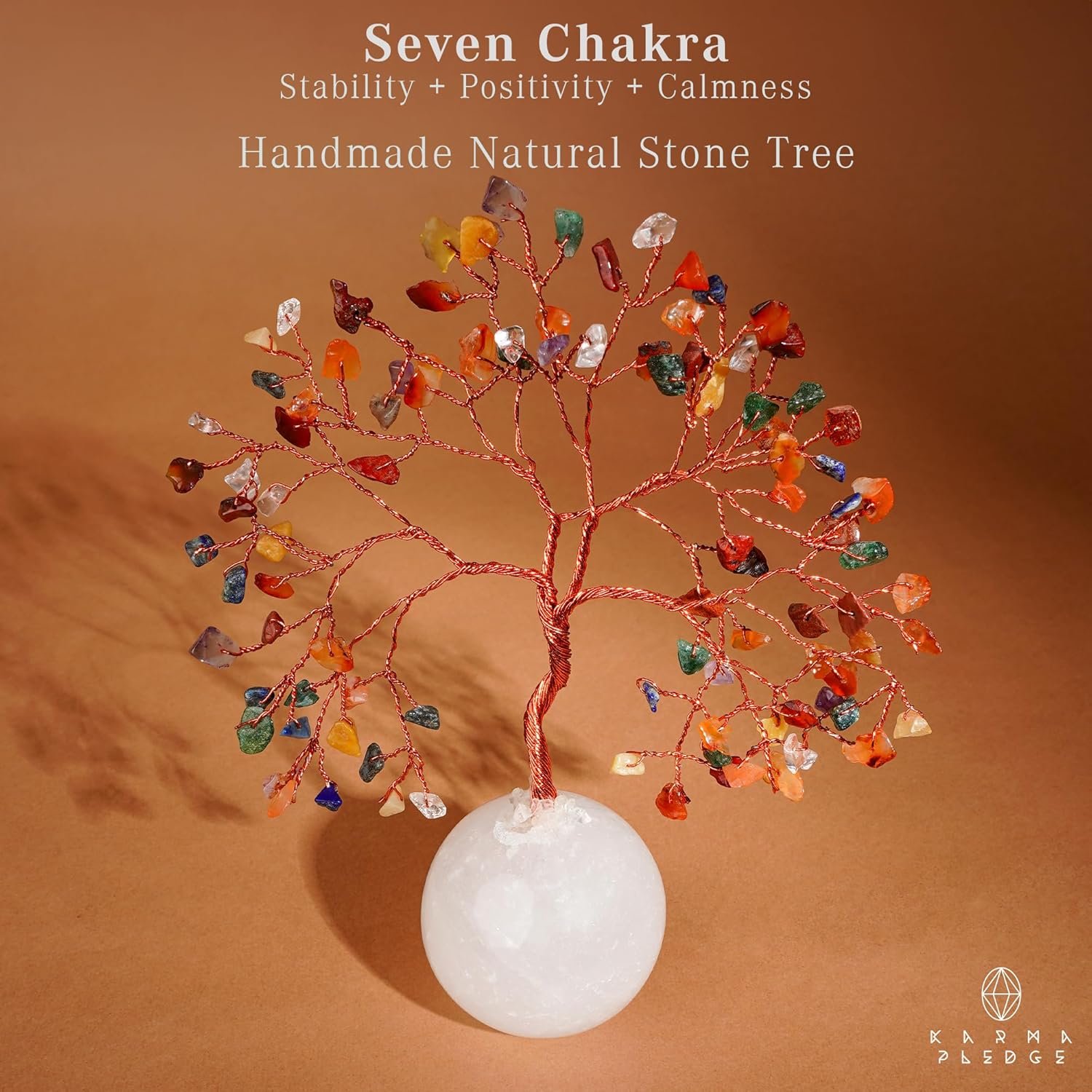 HANDCRAFTED CHAKRA TREE: The KARMAPLEDGE Handcrafted 7 Chakra Healing Crystal Bonsai Tree is a meticulously crafted piece of art, featuring seven different chakra crystals in the form of a stunning bonsai tree. Each tree is uniquely handcrafted, adding an exquisite touch to your home or office decor.