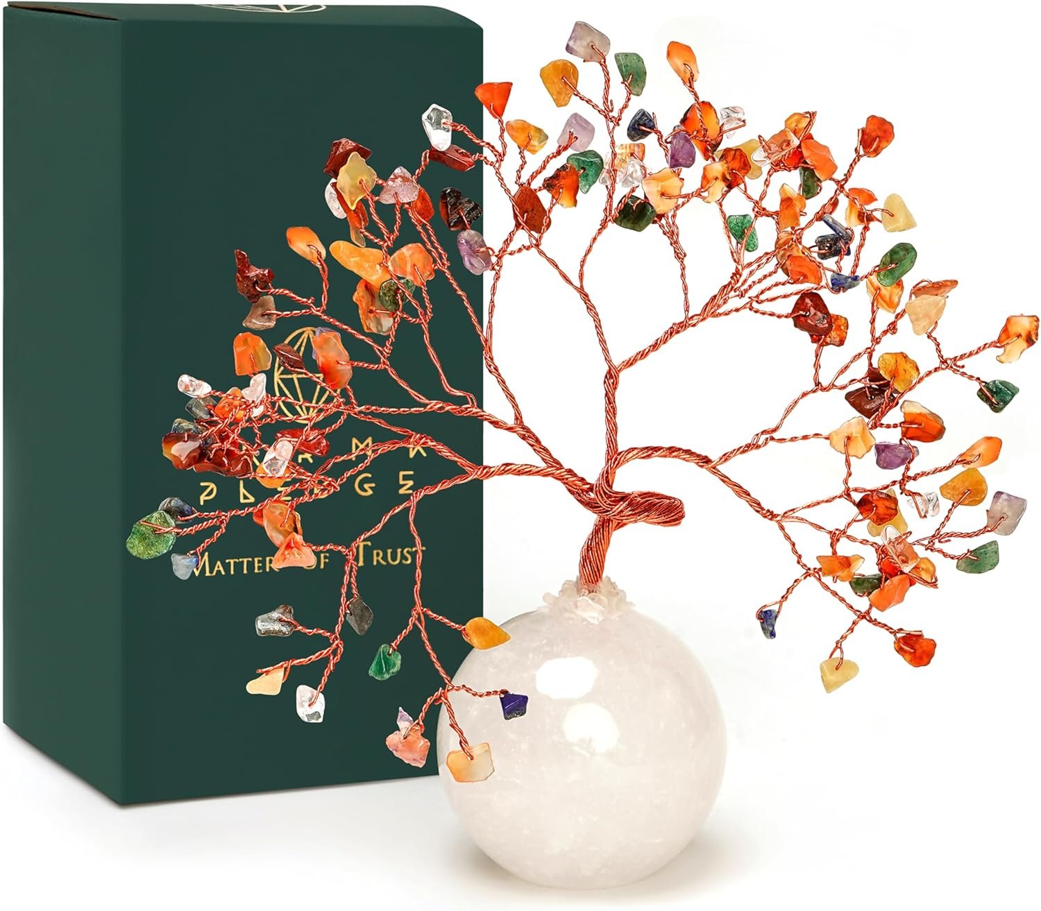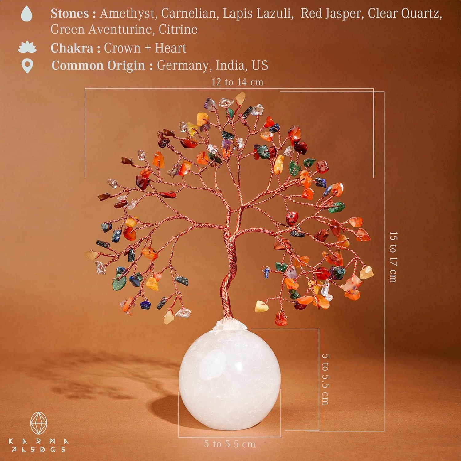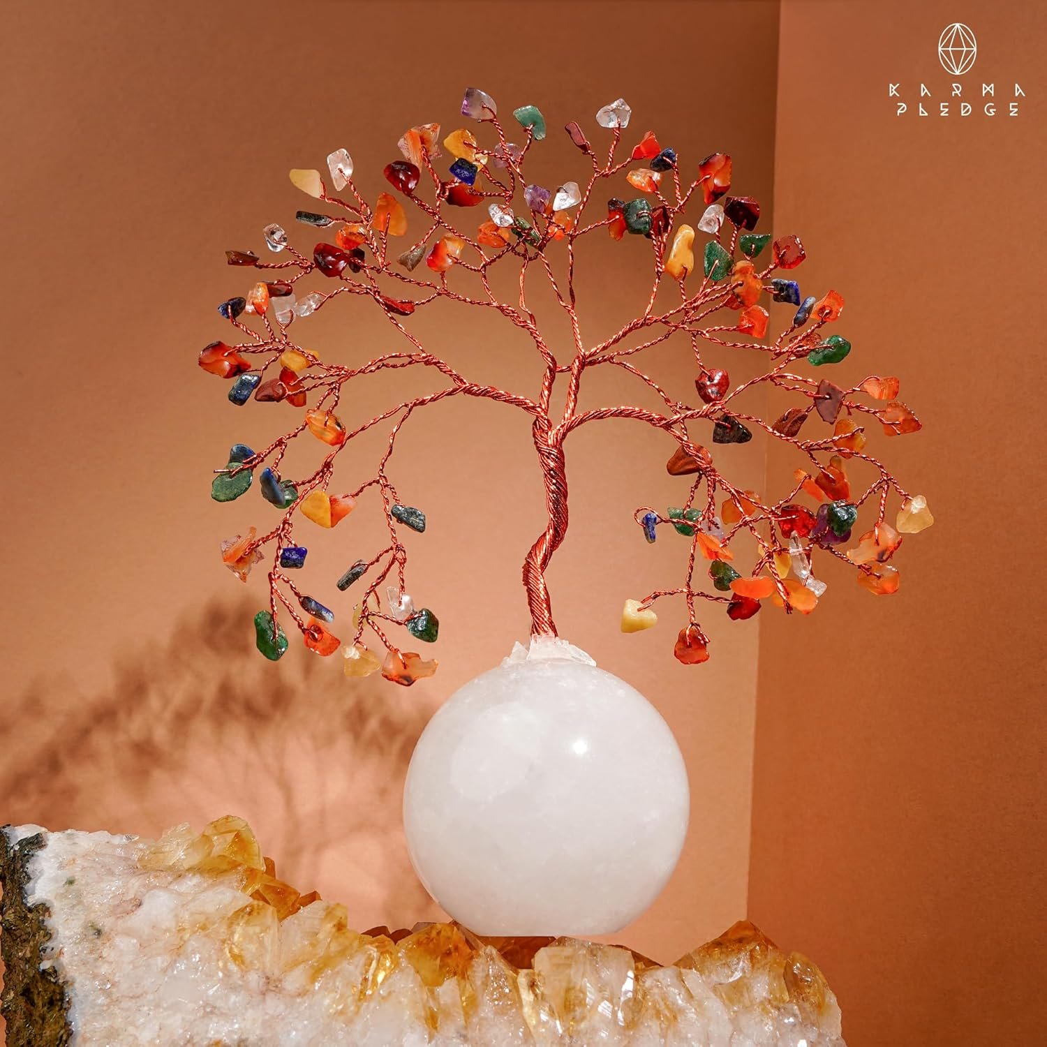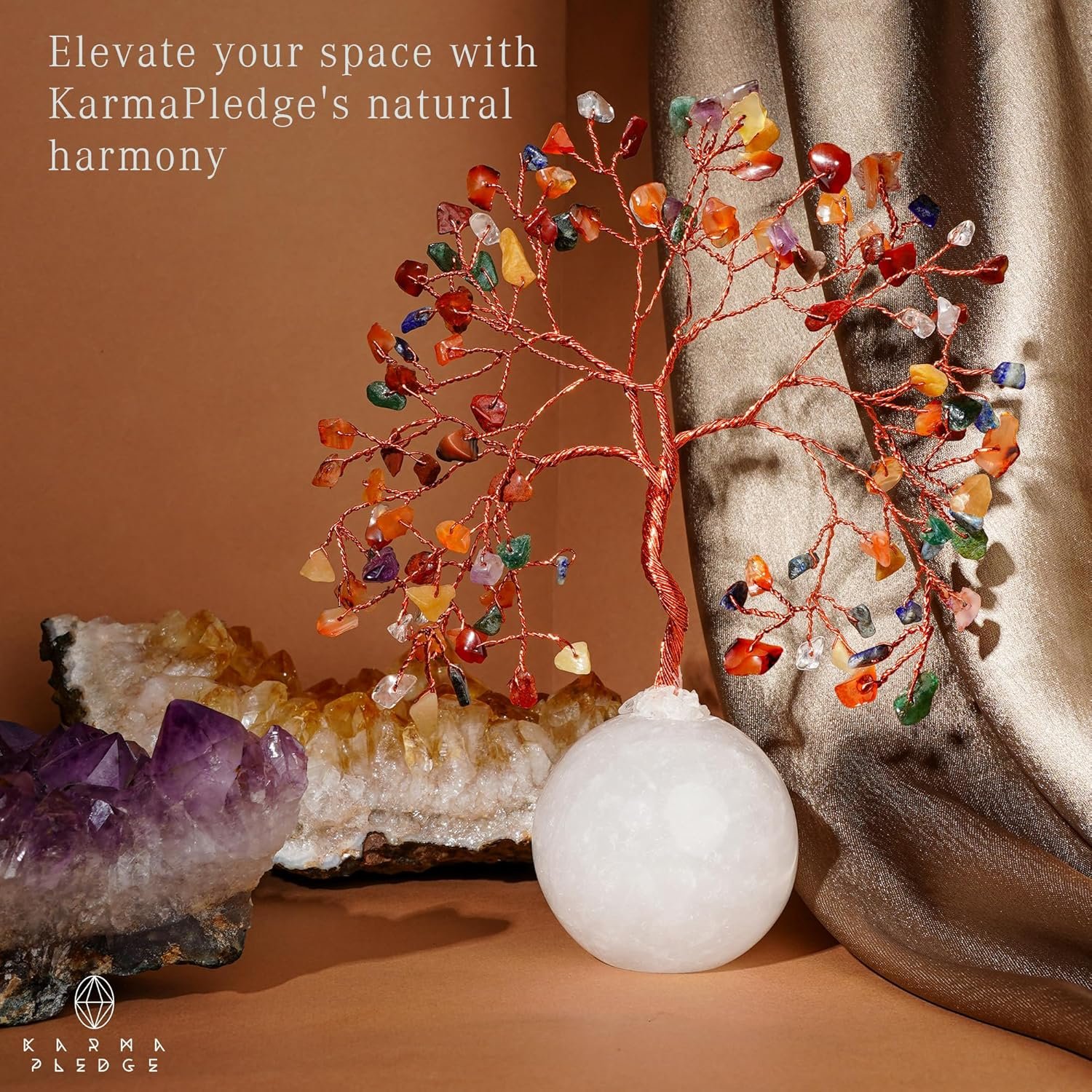 HANDCRAFTED CHAKRA TREE: The KARMAPLEDGE Handcrafted 7 Chakra Healing Crystal Bonsai Tree is a meticulously crafted piece of art, featuring seven different chakra crystals in the form of a stunning bonsai tree. Each tree is uniquely handcrafted, adding an exquisite touch to your home or office decor.