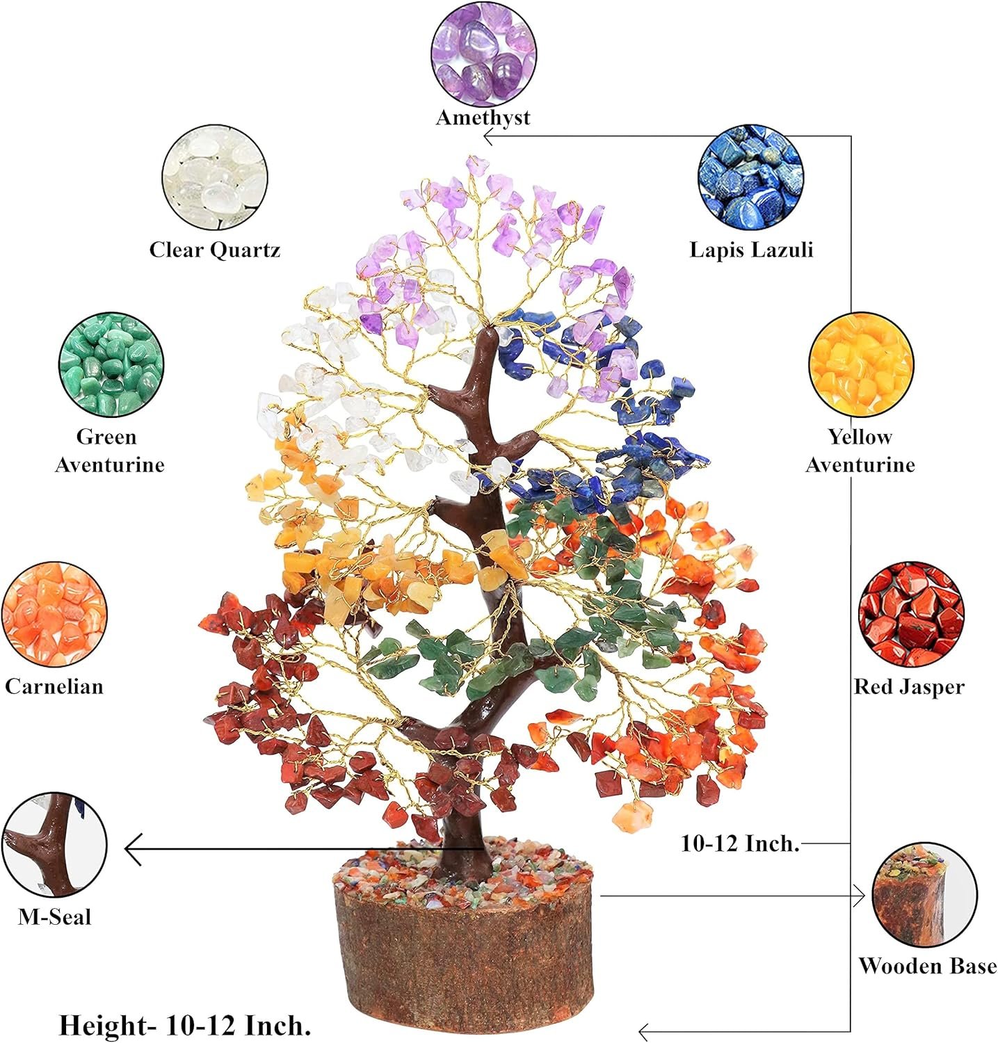 ✨ SEVEN CHAKRA GEMSTONE MONEY TREE: This Feng Shui Seven Chakra Gemstone Money Good Luck Tree of Life (Golden Wire) Size: 10-12 Inch, Handmade in INDIA, Money tree brings good luck, prosperity, provides positivity and enhances the power of your surroundings. Crystals can be used for healing or environmental enhancement, Gemstone Tree represents self-reflection, prosperity, calmness, balance, optimism, and creativity.