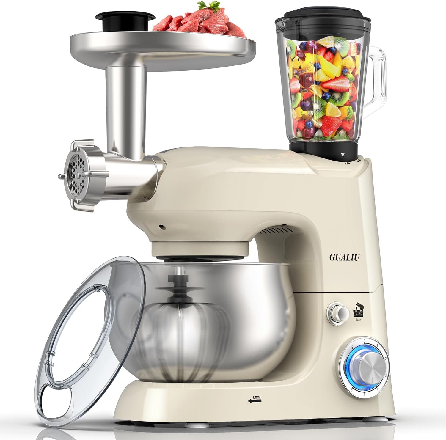 GUALIU 6-IN-1 Multifunctional Stand Mixer Features the ability to make a variety of recipe ingredients