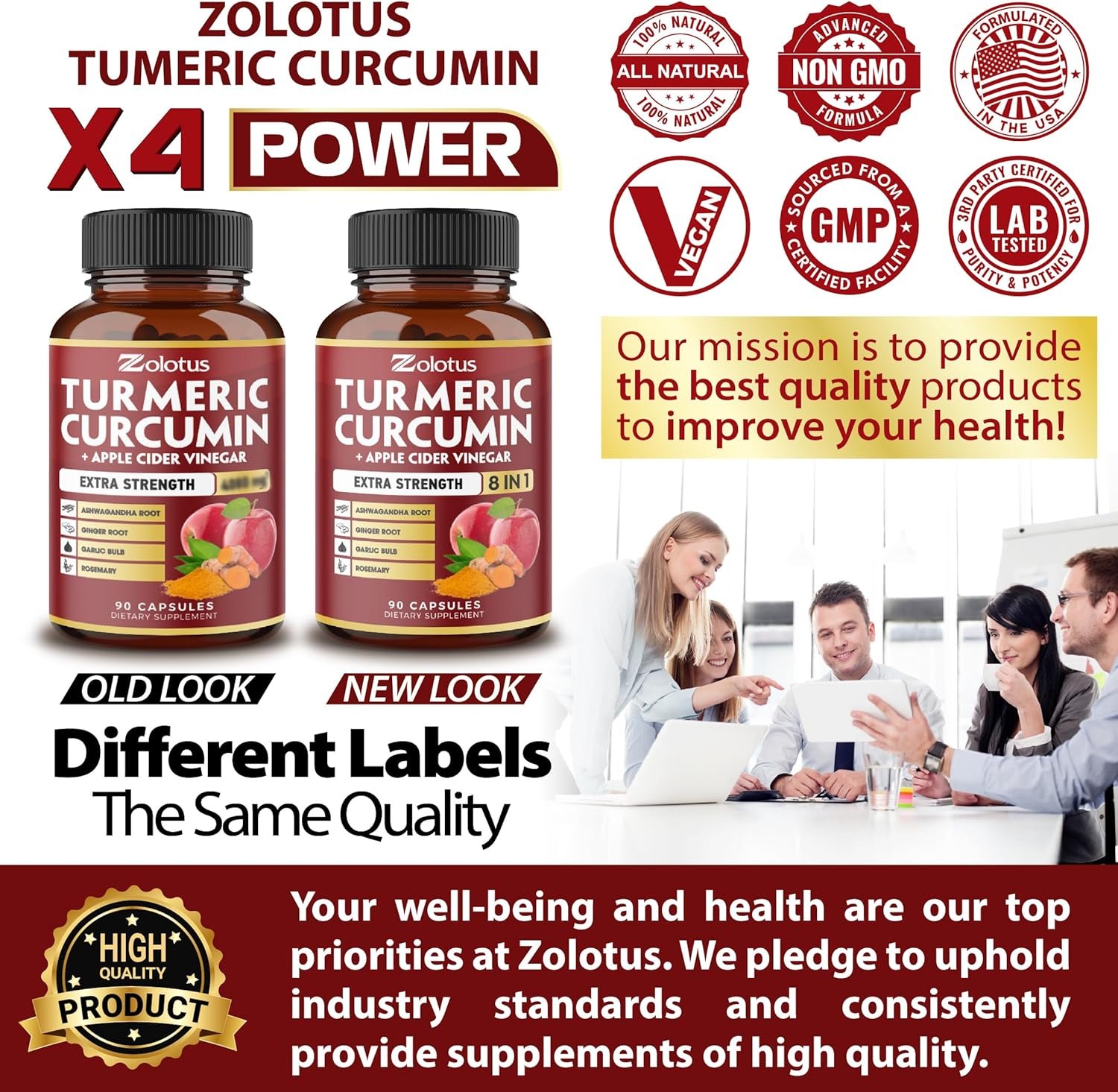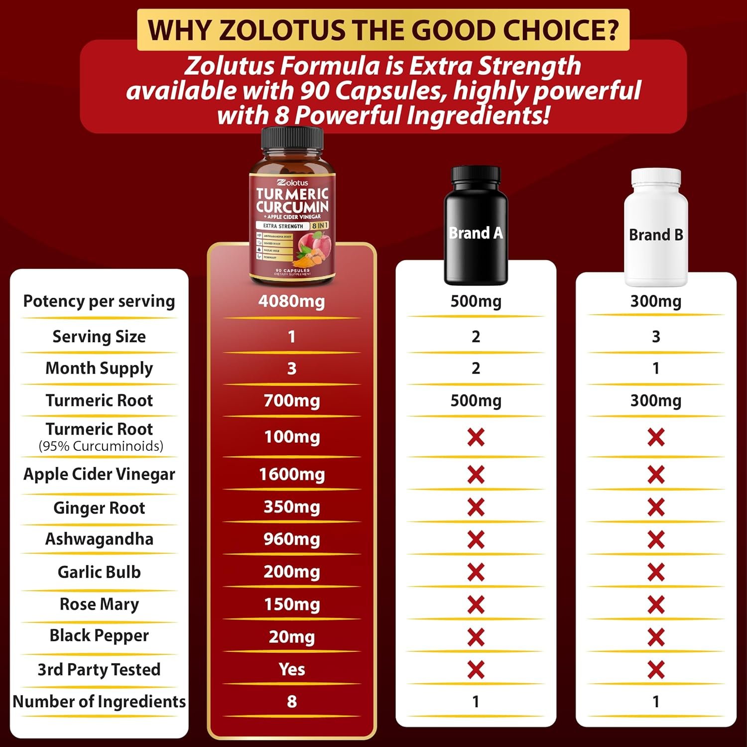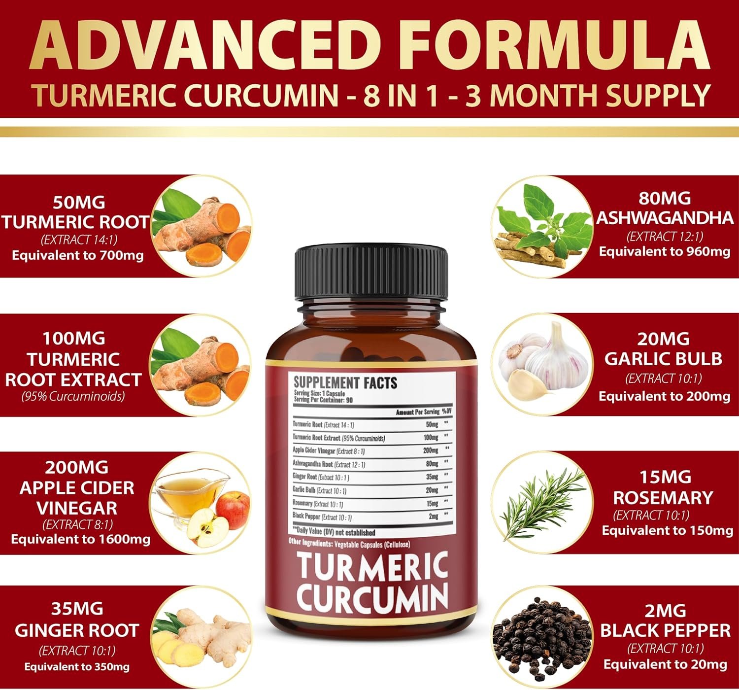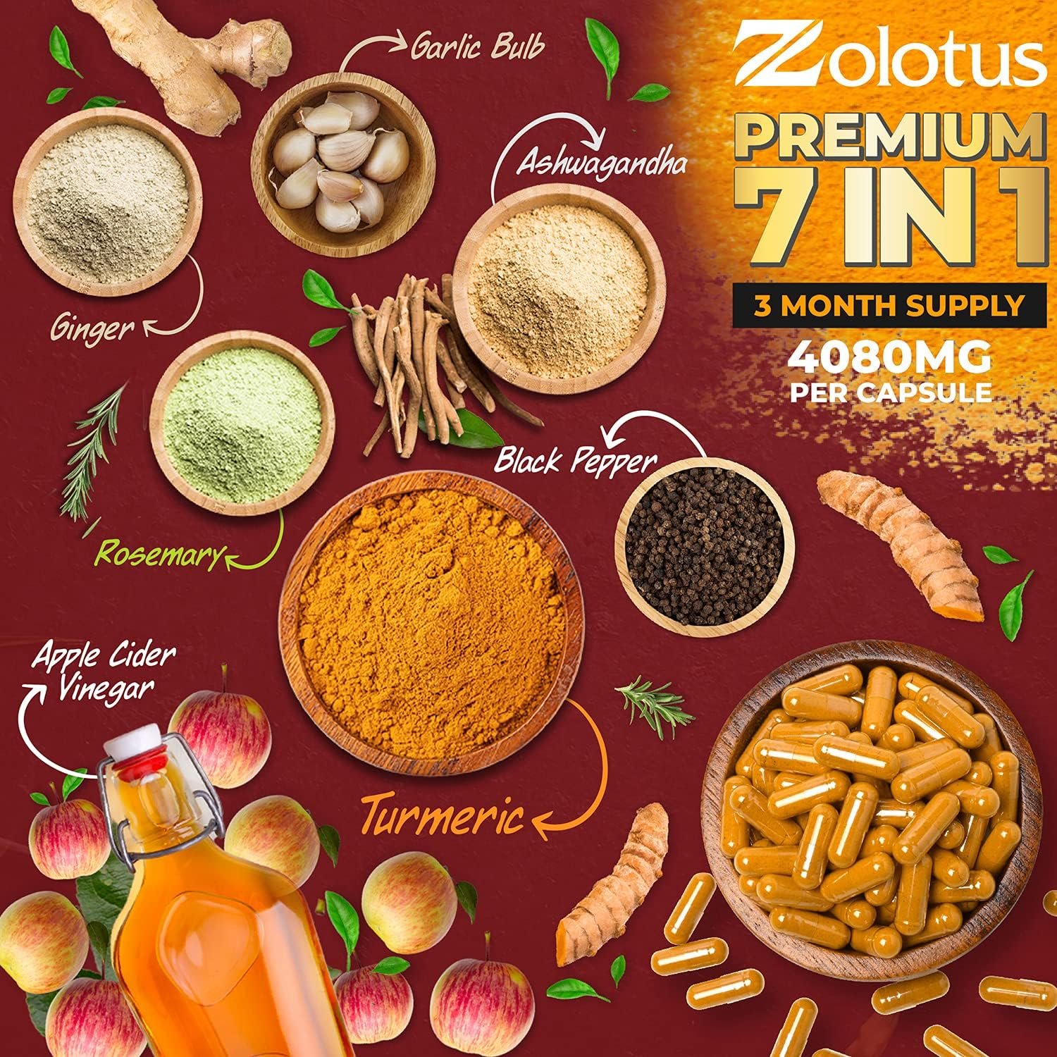 ✅ 7 in 1 : Zolotus Turmeric Curcumin supplements Included Apple Cider Vinegar, Ashwagandha Root, Ginger Root, Garlic Bulb, Rosemary, Black Pepper.