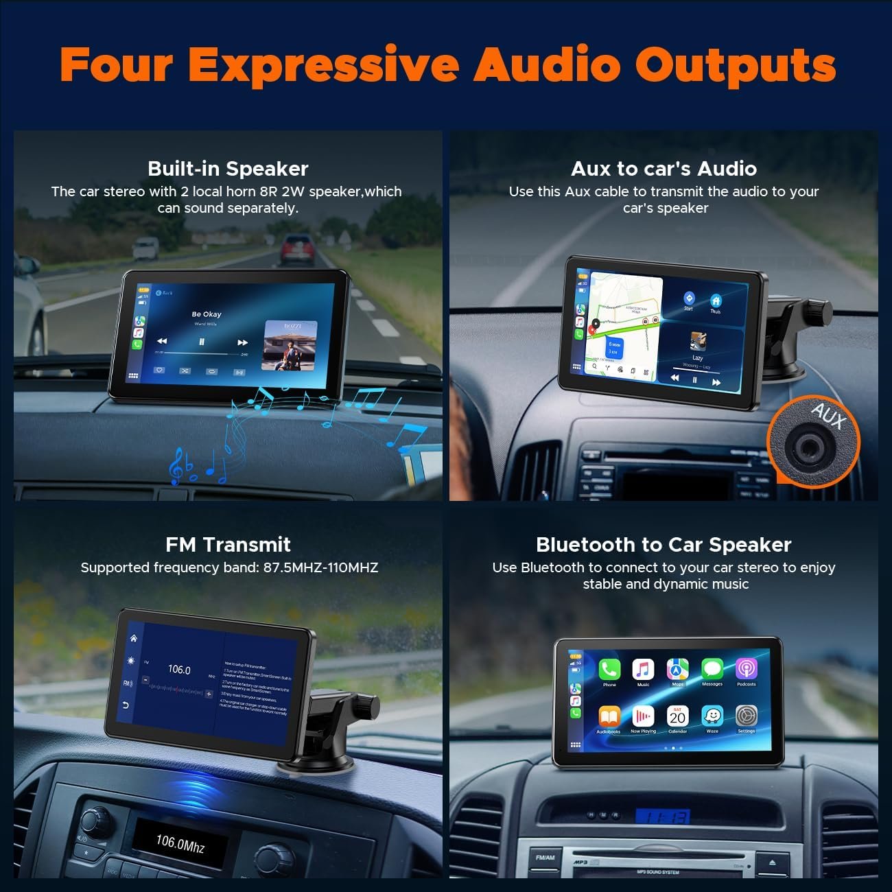 7-inch Portable Carplay Screen for Car Compatable with Apple CarPlay and Android Auto,Wireless Car Play Unit with GPS Navigation,Bluetooth,Mirror Link,Touch Screen for All Vehicles