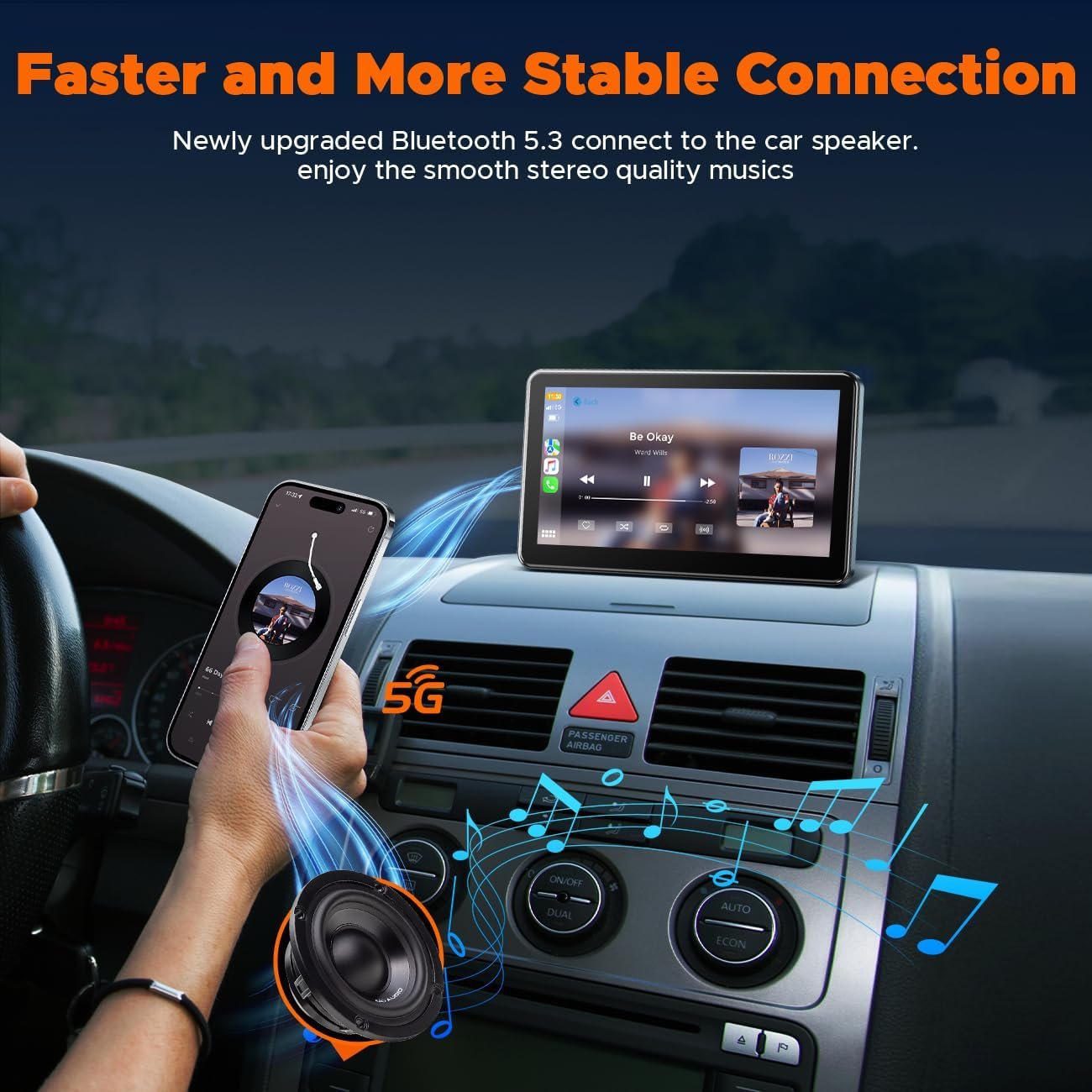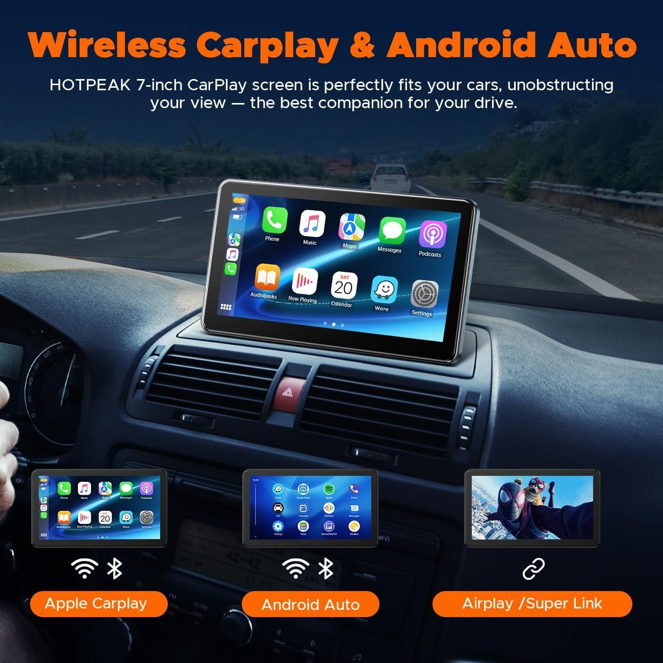 🚗【Stable Wireless Carplay and Android Auto】Hotpeak’s Portable Carplay screen is compatible with both Apple Carplay and Android Auto functionalities.Once inside your vehicle, your smartphone will automatically connect to the Apple Carplay screen,seamlessly integrating your phone into your driving experience.The Carplay box screen is designed to fit most cars.