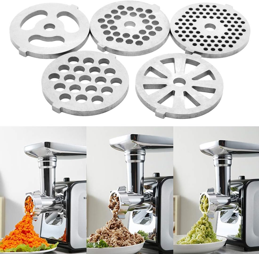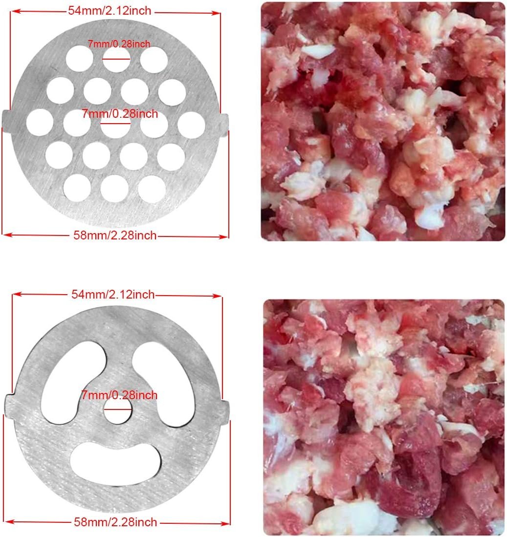 5 Grinding Plates & 2 Cutting blade for replacement parts of meat grinder and food chopper. Fits virtually all size 55 mm grinders and meat mincers, Center Hole 7MM.