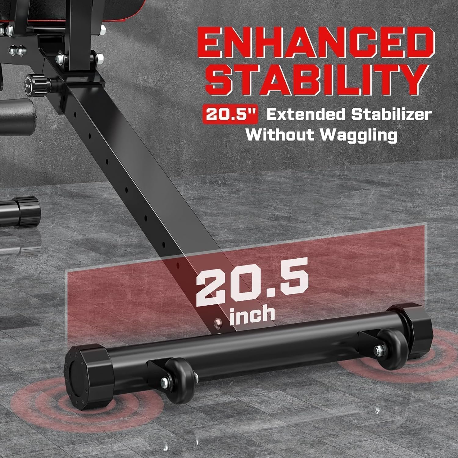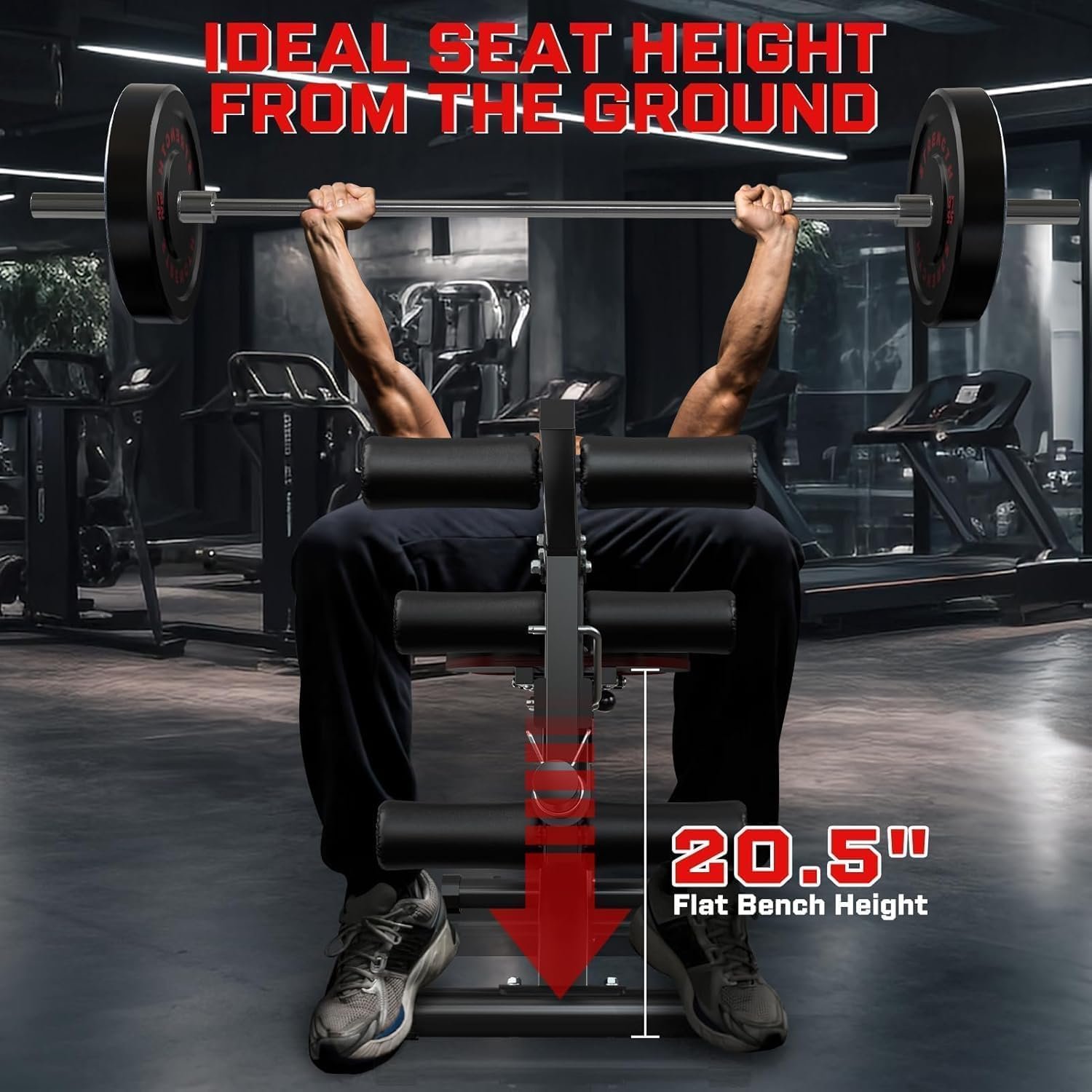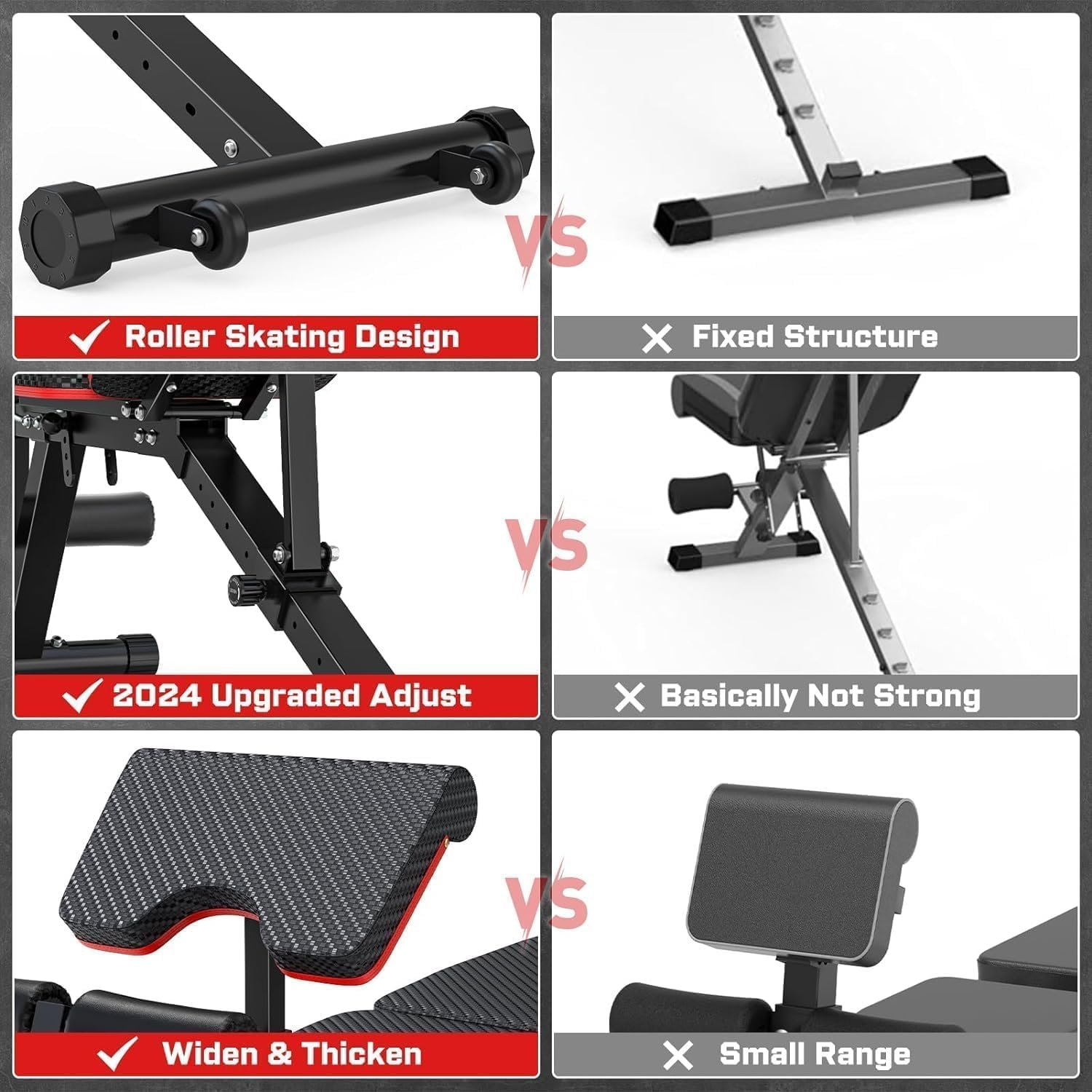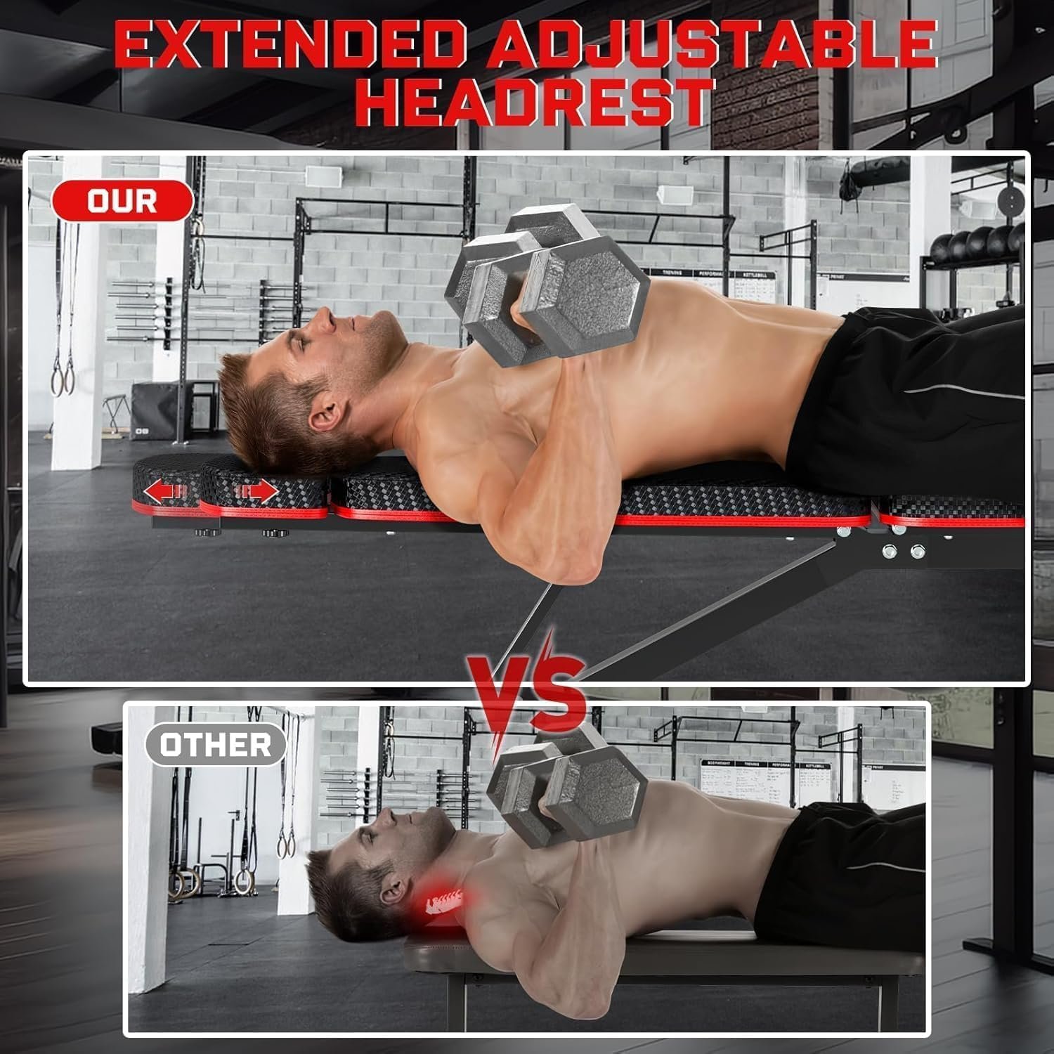 𝗟𝗘𝗡𝗚𝗧𝗛𝗘𝗡𝗘𝗗 𝗛𝗘𝗔𝗗𝗥𝗘𝗦𝗧: Our workout bench comes with an adjustable headrest to meet the fitness needs of people of different heights, provide optimal support for head and neck, helping to relieve neck and back discomfort and tension