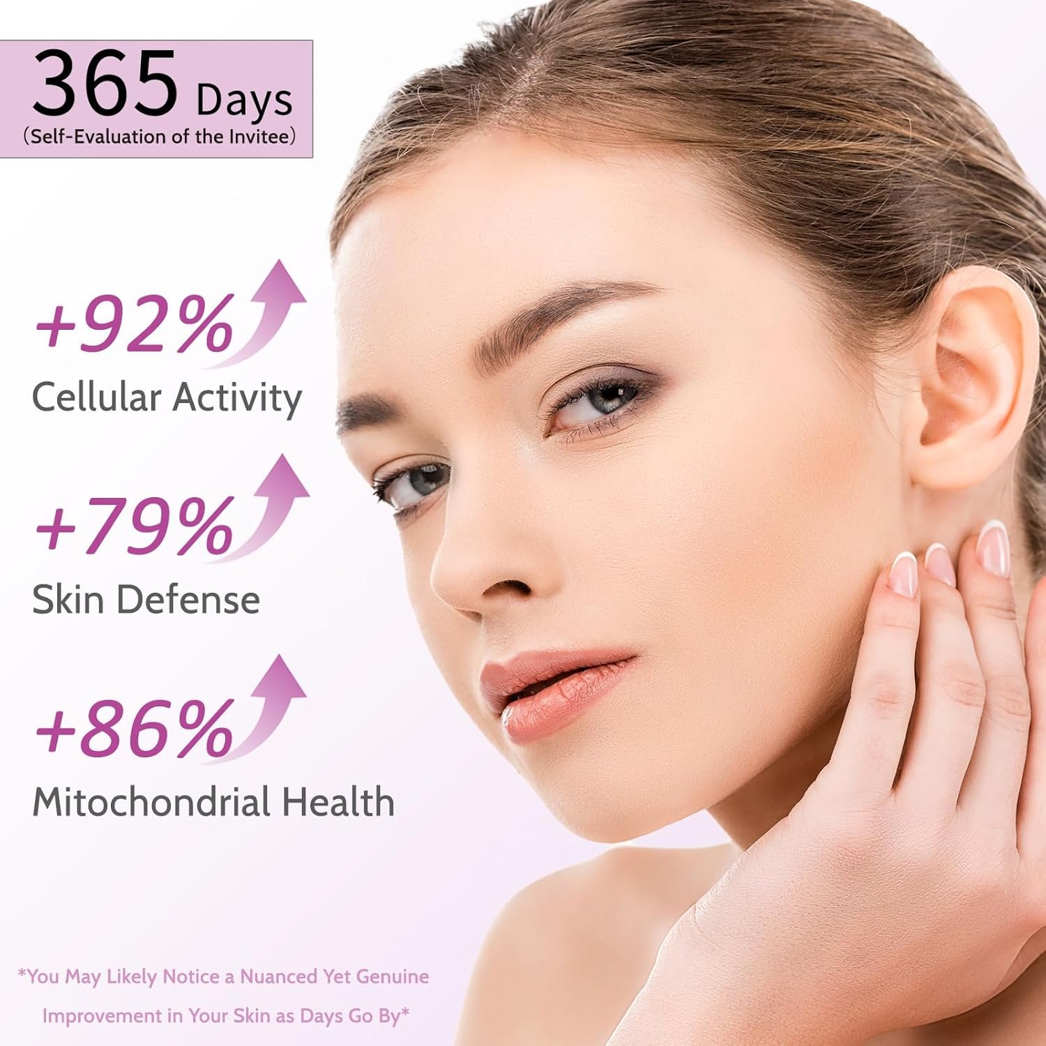 Take 3 capsules daily, and a bottle will last you 60 days. With consistent use, you’ll notice a significant improvement in your skin’s appearance and vitality, outperforming the skin health of over 80% of your peers.