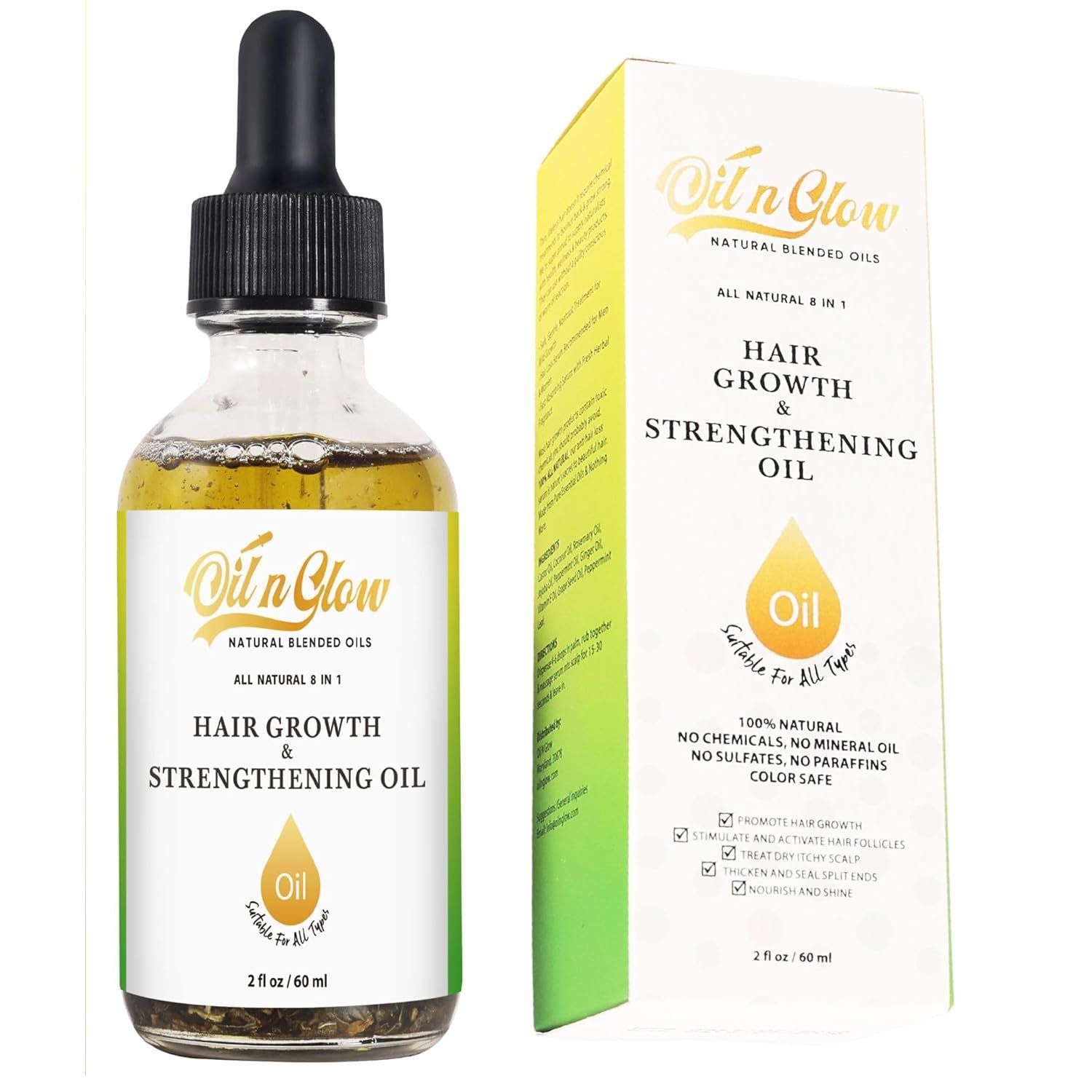 9 in 1 Natural Hair Growth Oil: Oilnglow hair growth oil and hair strengthening oil is crafted with a blend of 9 premium oils: nourishing coconut oil, moisturizing jojoba oil, stimulating rosemary hair growth oil, fortifying castor oil, invigorating peppermint oil, enriching vitamin E oil, soothing peppermint leaf, revitalizing ginger oil, and enhancing grape seed oil. Perfect natural hair oil for dry damaged hair and hair growth oil for women and men.