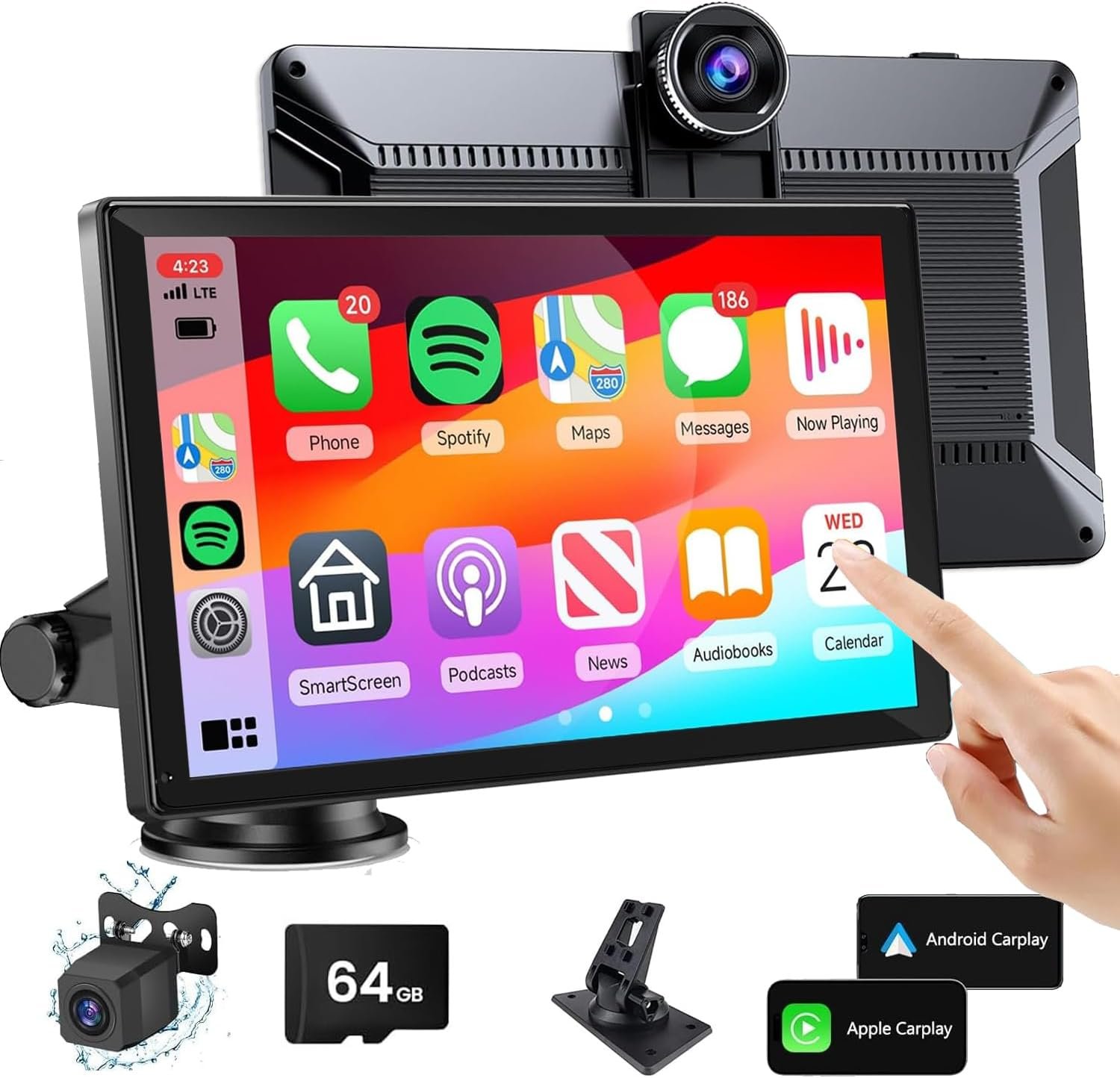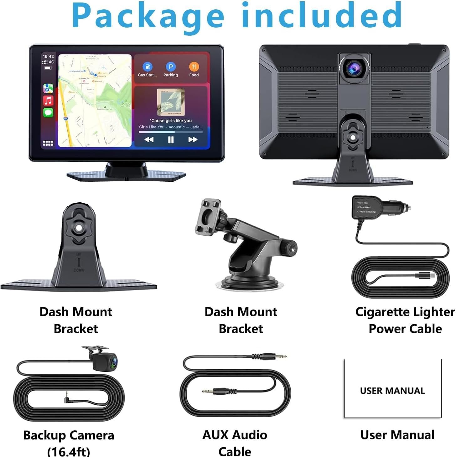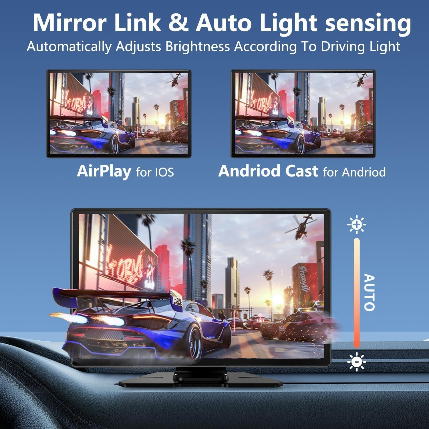 【GPS Navigation & Mirror Link】By connecting your smartphone to this portable Apple Carplay screen, you can seamlessly share live maps between your phone and the Carplay screen. Instantly access up-to-date navigation information, easily search for your destination, and send routes directly to your Carplay display.This 9-inch Apple Car Play supports IOS mirroring, which allows you to easily connect and sync what you want to see on your phone screen through mirroring link.
