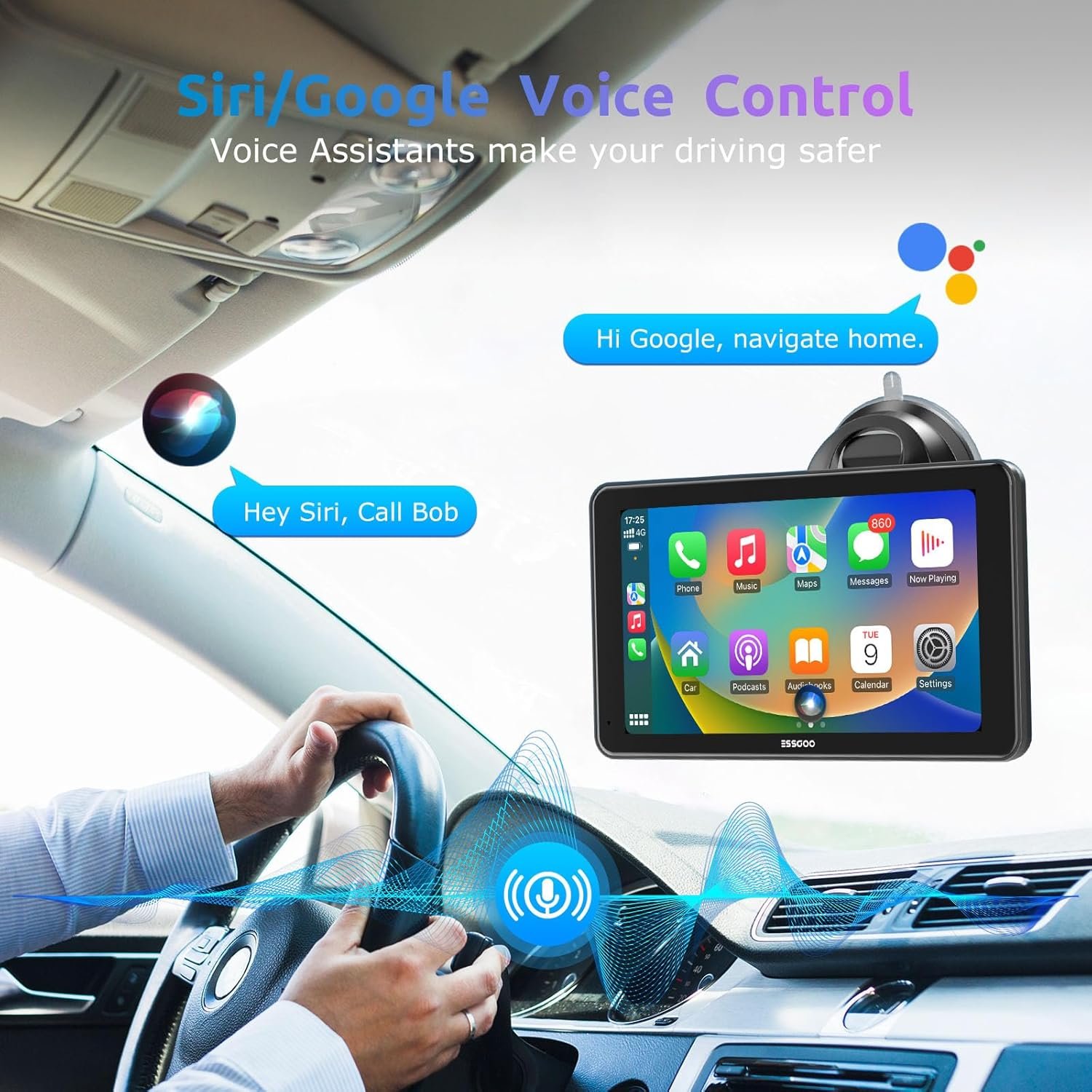 【Wireless A-pple CarPlay & Android Auto】This portable CarPlay screen for car is compatible with A-pple CarPlay and Android Auto wireless link functions. All you need to do is get into the car and turn on Bluetooth and WiFi, and your smartphone will automatically connect to the wireless CarPlay screen.(Note: Supports iOS 7 and above; Android 11 and above; G-oogle 8 versions).