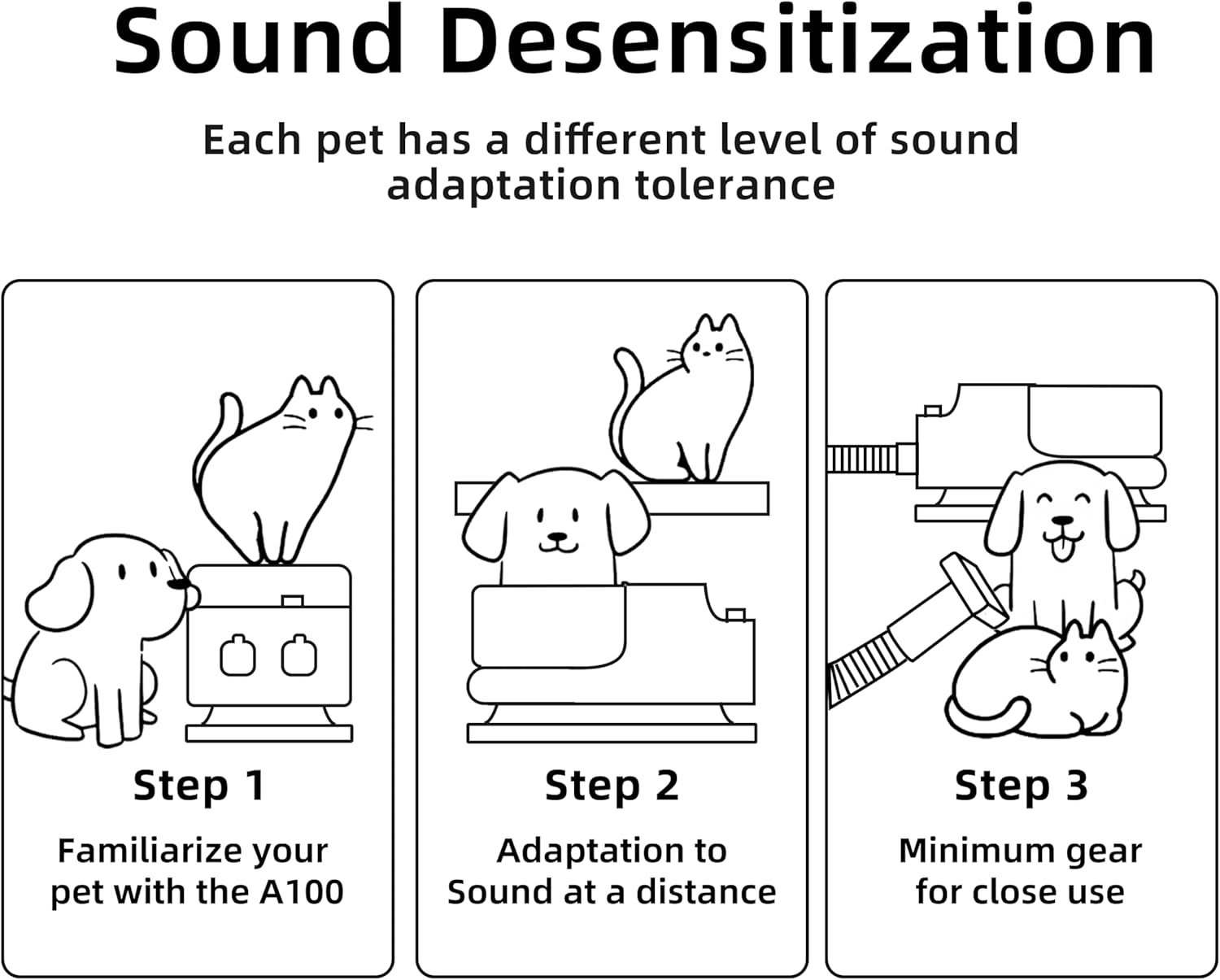 𝐂𝐥𝐞𝐯𝐞𝐫 𝐃𝐞𝐬𝐢𝐠𝐧 𝐟𝐨𝐫 𝐅𝐥𝐚𝐭 𝐒𝐮𝐜𝐭𝐢𝐨𝐧: The A100 Pet Grooming Vacuum features a detachable flat nozzle suction and trimmer. This design allows you to trim your pet’s hair more conveniently, efficiently, and professionally from anywhere. By separating the flat nozzle from the trimmer, you can easily manage and maintain the grooming process, keeping your home clean and your pet looking great.