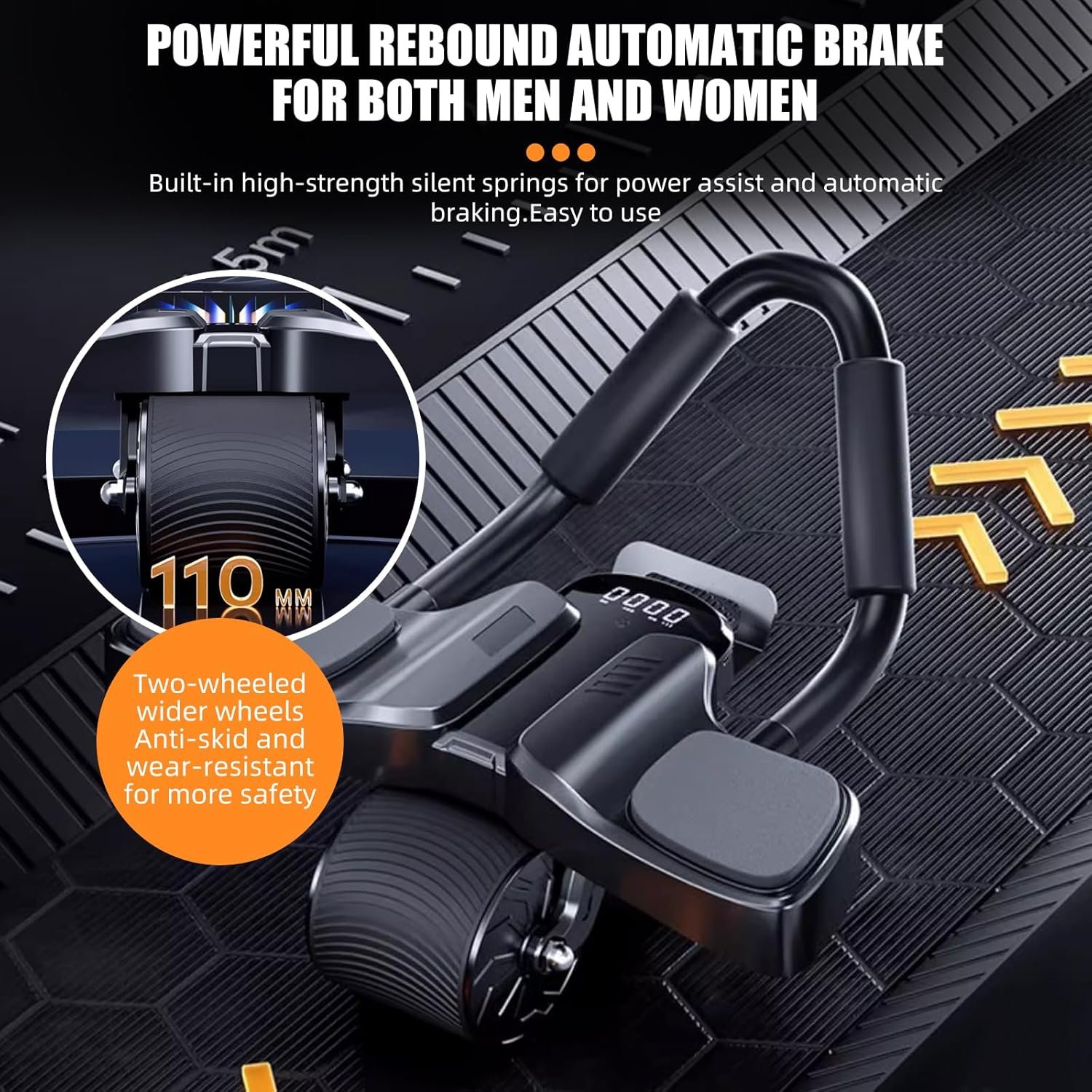 Ab roller has a revolutionary automatic rebound design with intelligent auxiliary brakes and a built-in brake system for smoother and more controlled steel rebound.