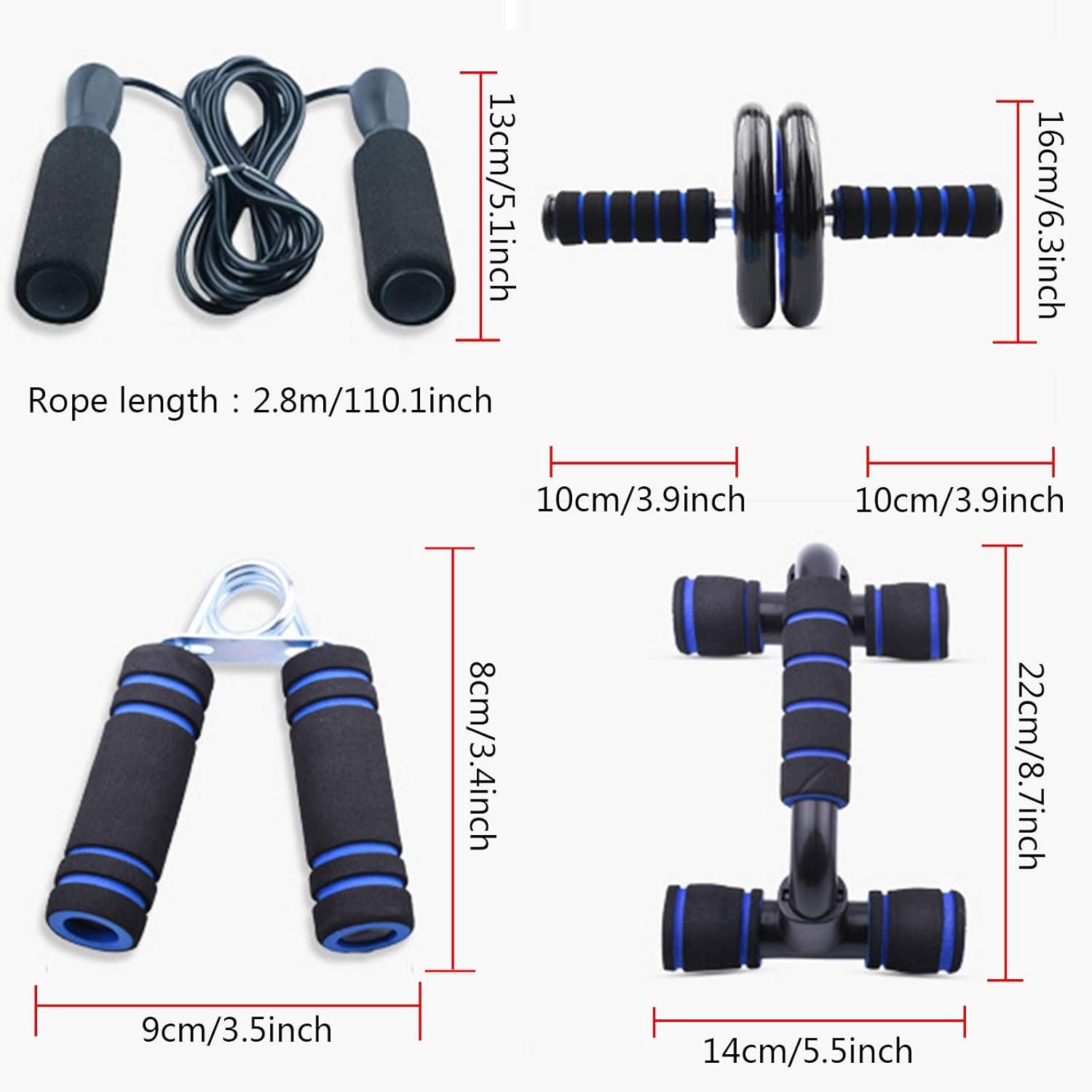 5-in-1 Home Exercise Equipment: AB roller kit is designed to help you build stronger and bigger abdominal muscles; Improve your overall health and exercise at home, gym or office; Includes Jump Rope, Hand Gripper, Push-Up Bar, help you to save money