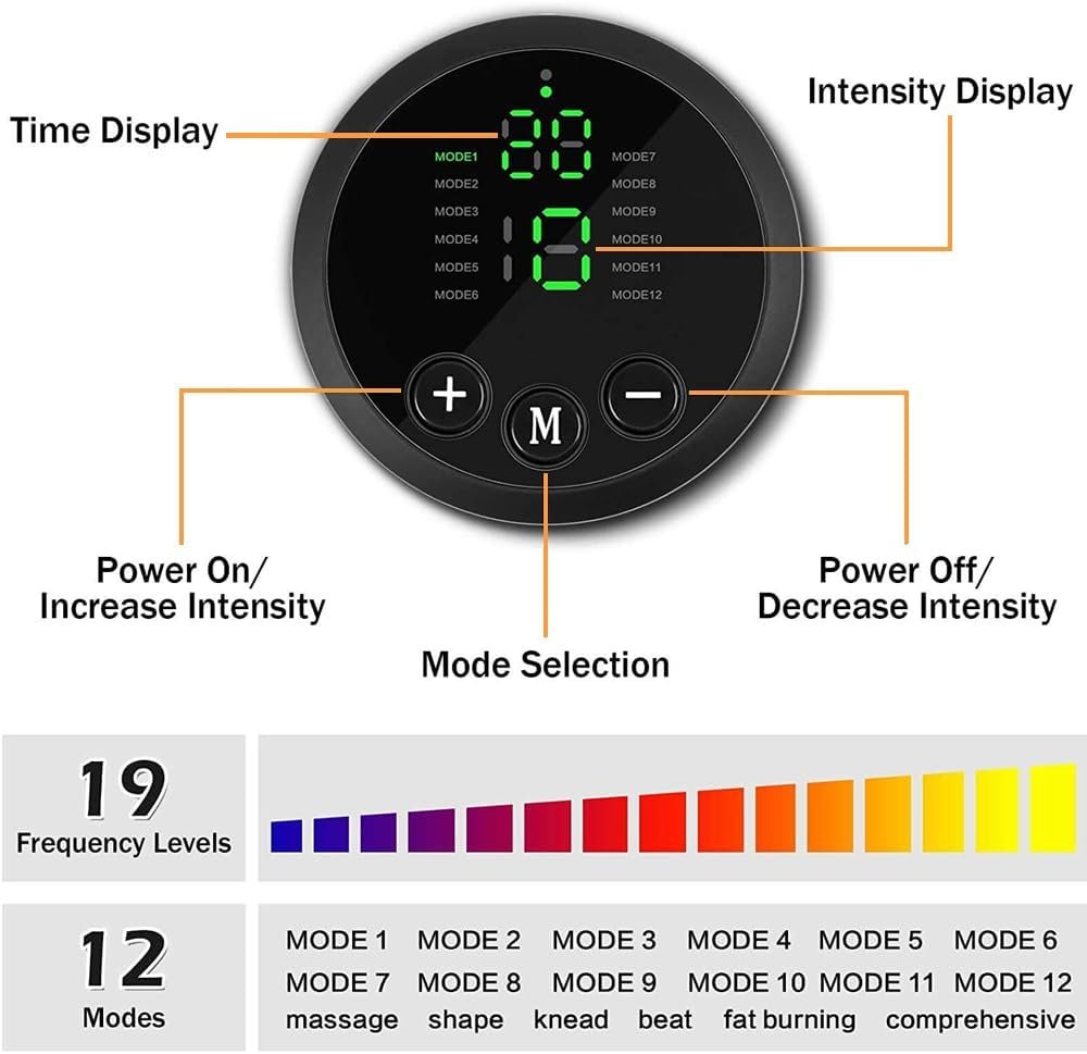Powerful Function – The Abdominal Muscle Toner features an impressive 113cm length. With its flexible design, it can stretch up to a maximum of 47 inches, making it ideal for waist sizes ranging from 25 to 44 inches. And the abs stimulator has 12 modes and 19 intensity levels. Just apply the belt to your abs, then select the appropriate mode and intensity level. Recommended to start at a low intensity level for initial use and gradually adjust to a comfortable level.