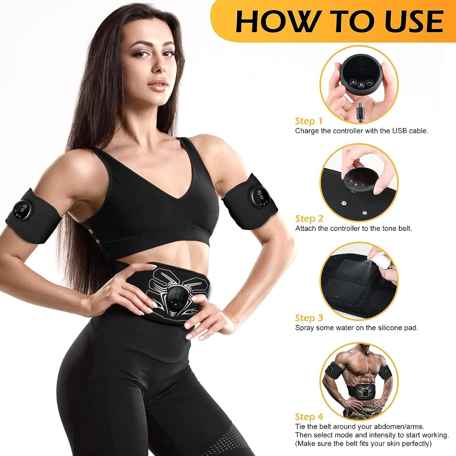 【Effective and Adjustable 】: Workouts for 20 minutes twice a day with this Zomhaos abs machine. This abs stimulator abdominal will help you resulting in fast muscle-building and you will see the change within 3 months. The length of the abs simulator is 46 inches, features a velcro strip and fits a 25 to 46-inch waist. The arm belt fits a 9.44 to 14.96-inch arm size, suitable for men and women.