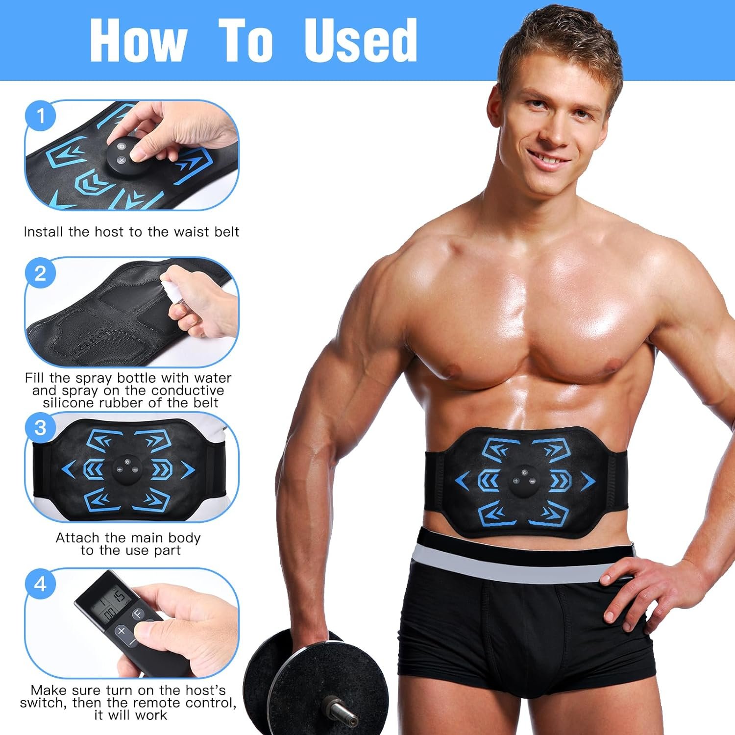 1*Abdomen Stimulator waist belt, 1*Tens host, 1*Remote control,1*Backup battery, 1*Sprayer, I*USB cable, 1 Packaging box, 1 User manual