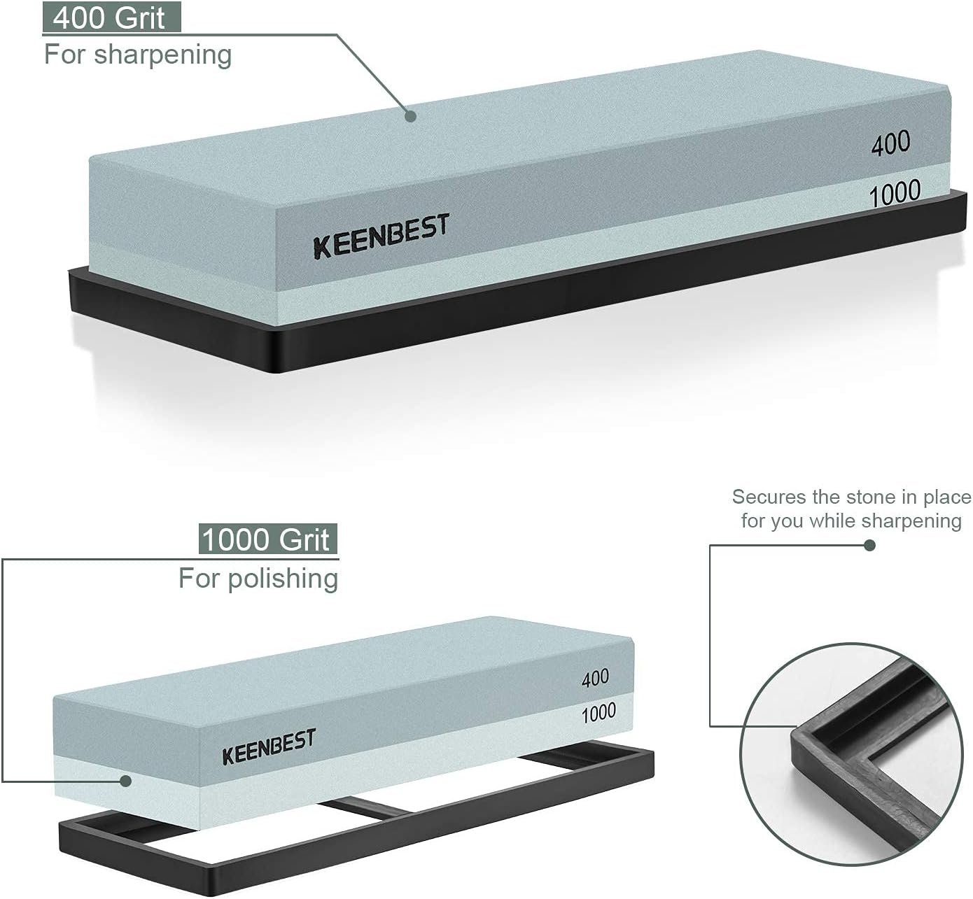 Made with superior silicon carbide, the 400 grit side is suitable for any daily sharpening, such as repairing the knives with big cutting edges, and polishing the knives, the 1000 grit will help you to make the knives more smooth after using the 400 grit