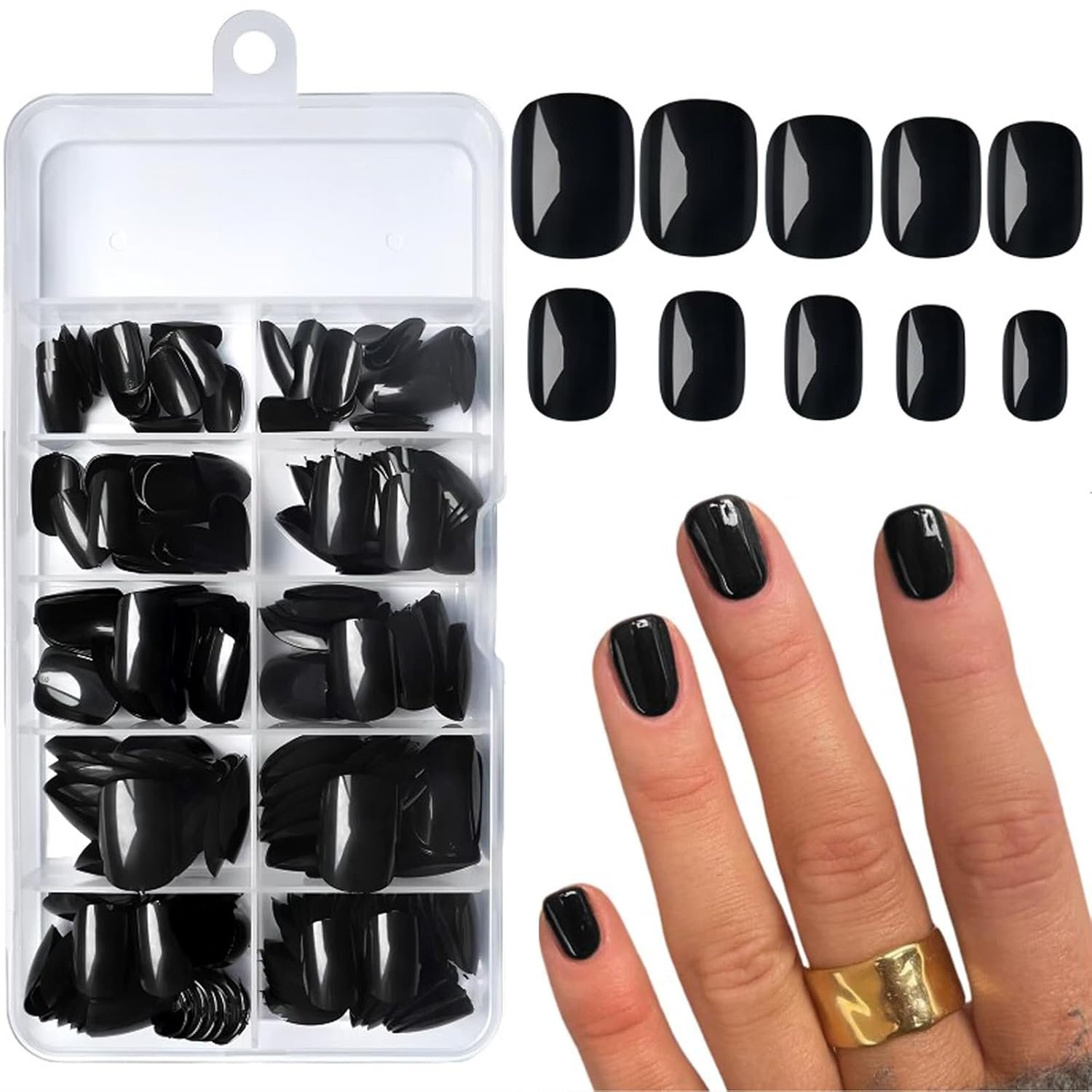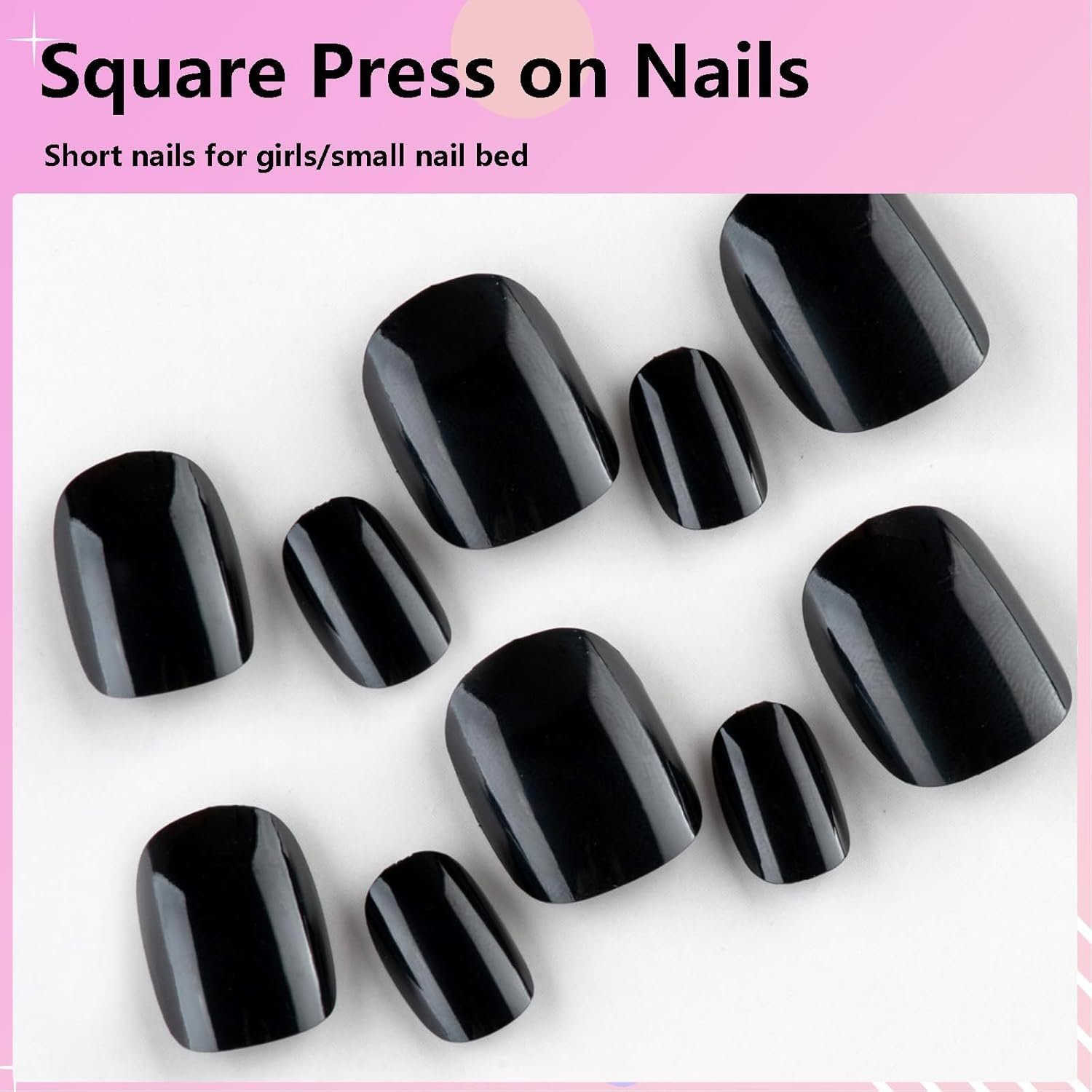 Short press on nails kit with nail glue: included 240pc/set solid colored glossy shinyblack press on nails for women girls teens kids diy nails manicure. 5 sheets adhesive glue sticky tabs, 2 nail glue, 1 mini file, come with everything you need for a quickly DIY nail art manicure, you don’t need to purchase anything else. Save your money and time