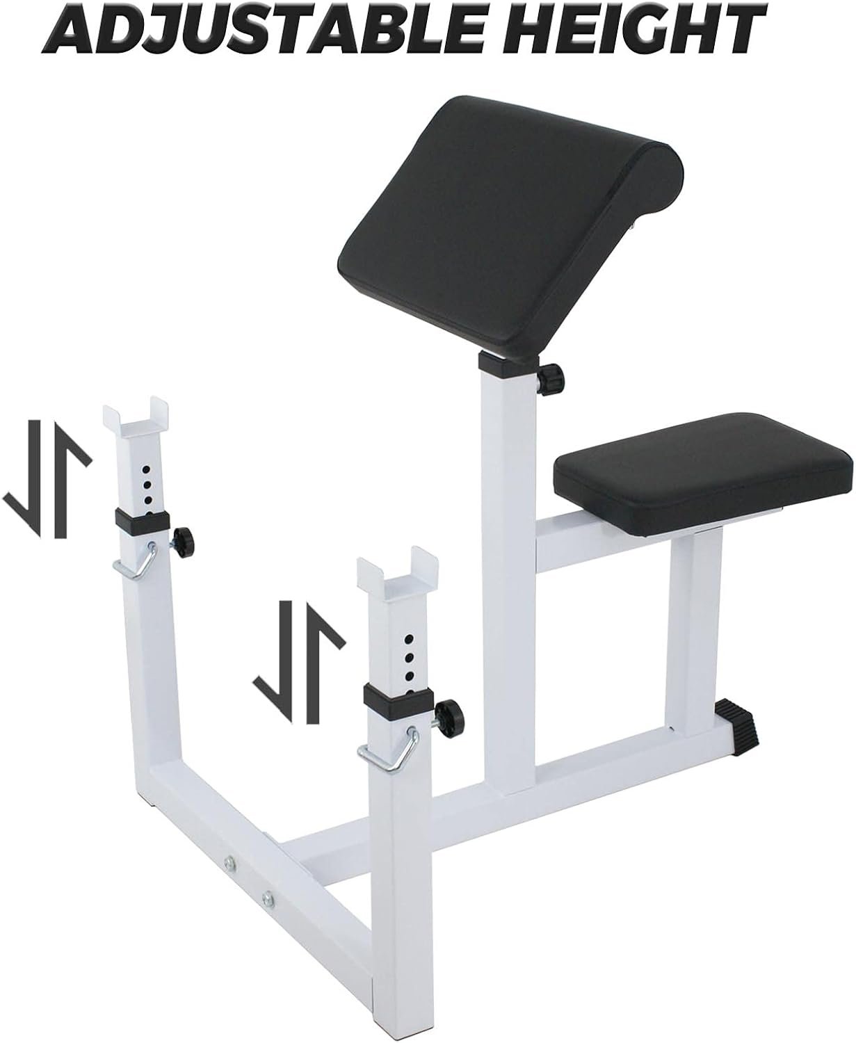 【Safety and Durable】Our sturdy bicep curl bench is made of heavy-duty steel and cushioned seat and armrests, which can give you a nice experience of body workout. Also, the best material can accompany you with a long time without repair.
