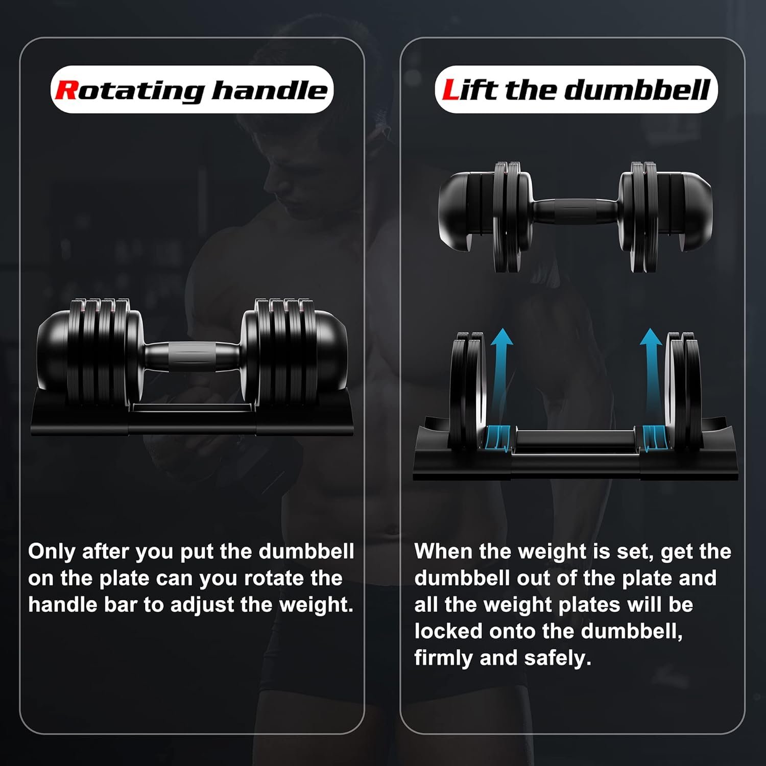 Versatile Dumbbell- With our adjustable dumbbell you can truly get a total body workout like shrugs, lunges, curls and raises; make the exercise funny. Using with dumbbell tray, enjoy the smoothly training process
