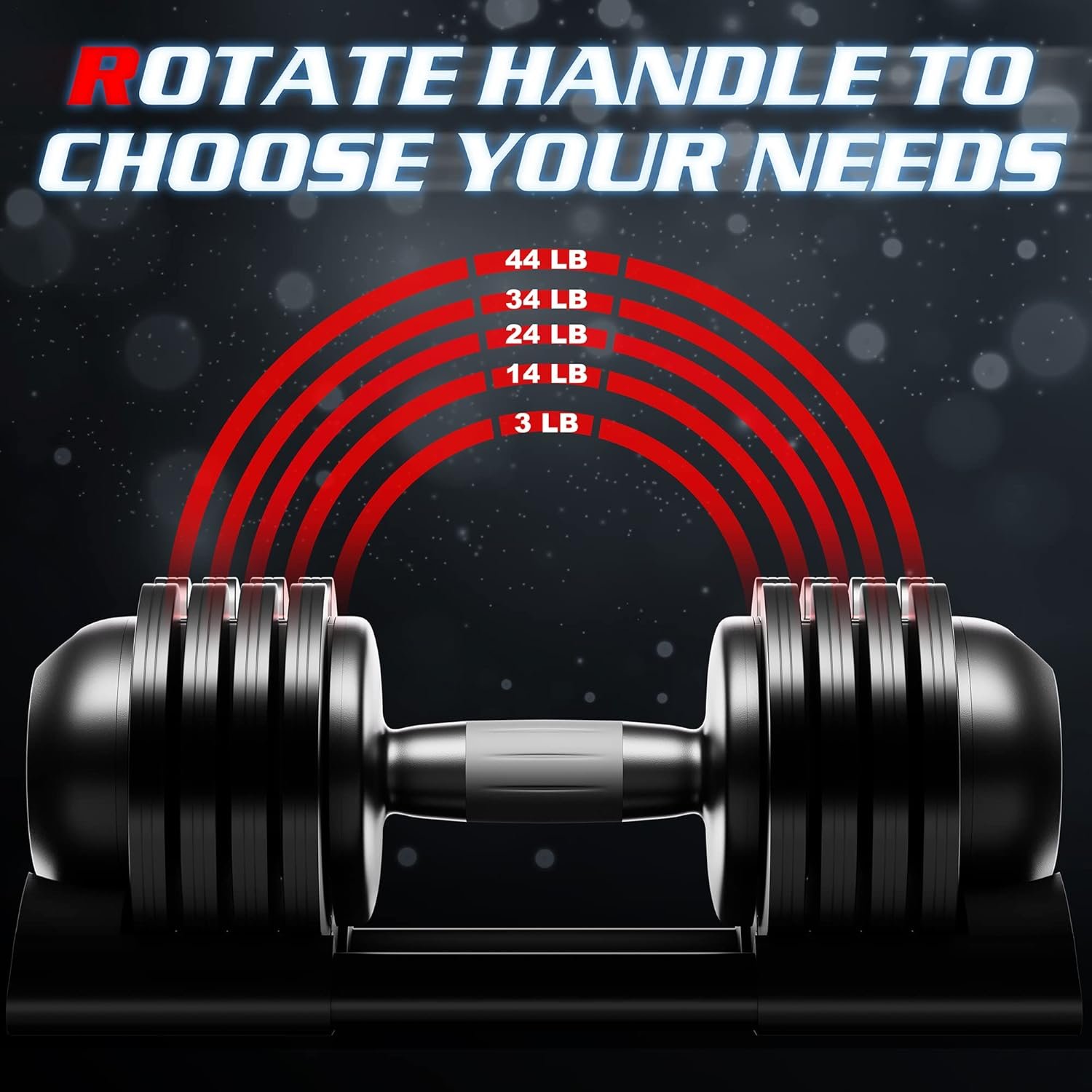 Adjustable Weight- Our adjustable weight dumbbell features free weight adjustment from 3-16-28-40-52lb, suitable for beginners to professional. Committed to meet your needs for diversified weight training, it is a great choice for modify muscle lines and strong muscle fibers