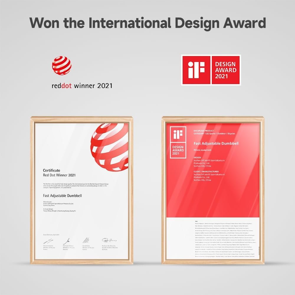 Red Dot Award-Winning Design: Innovative and recognized for excellence, these adjustable dumbbells offer a versatile solution for effective workouts.
