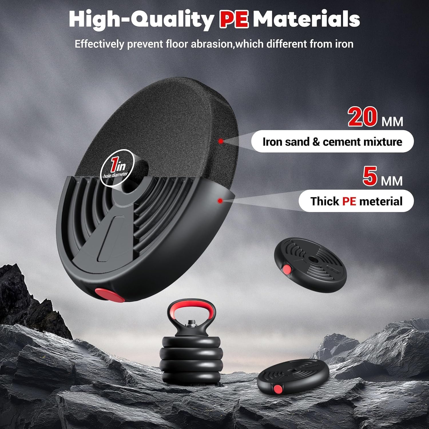【Made from High-quality Material】: This 4 in 1 adjustable dumbbell set is all made from high-quality materials, it ensure that our dumbbell set not only durable, but also odorless. The weight plate’s interior is filled with a mixture of iron sand and cement, and the shell is blown molded from PE material, which no damage to your floor.