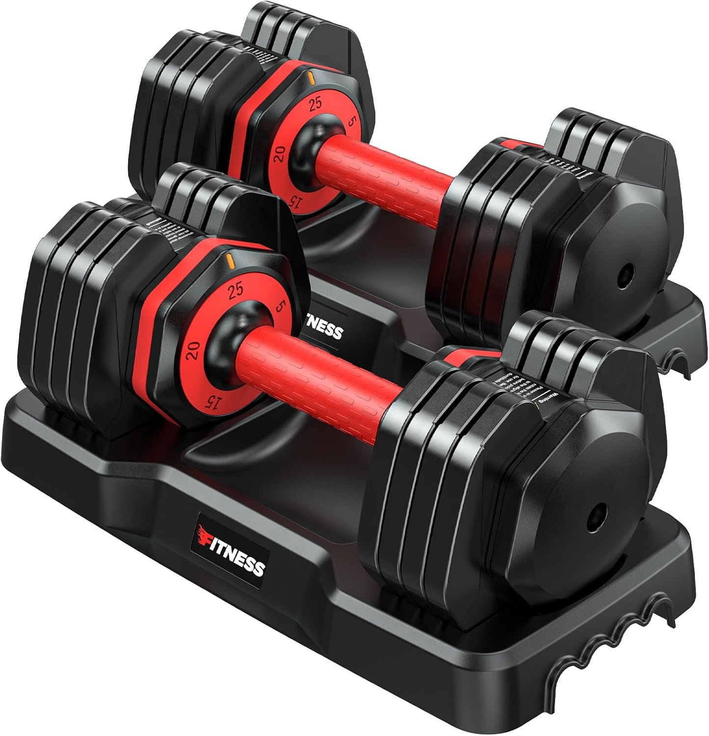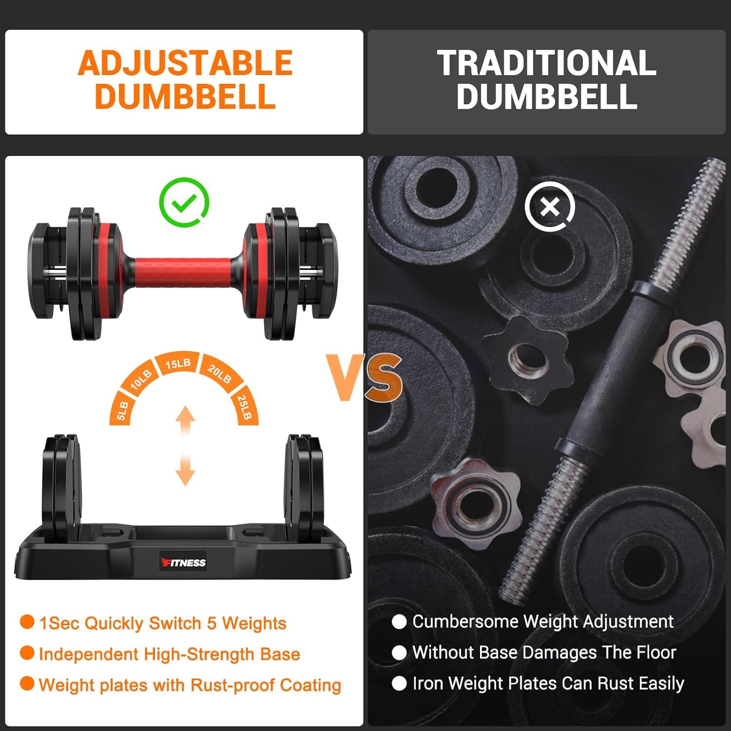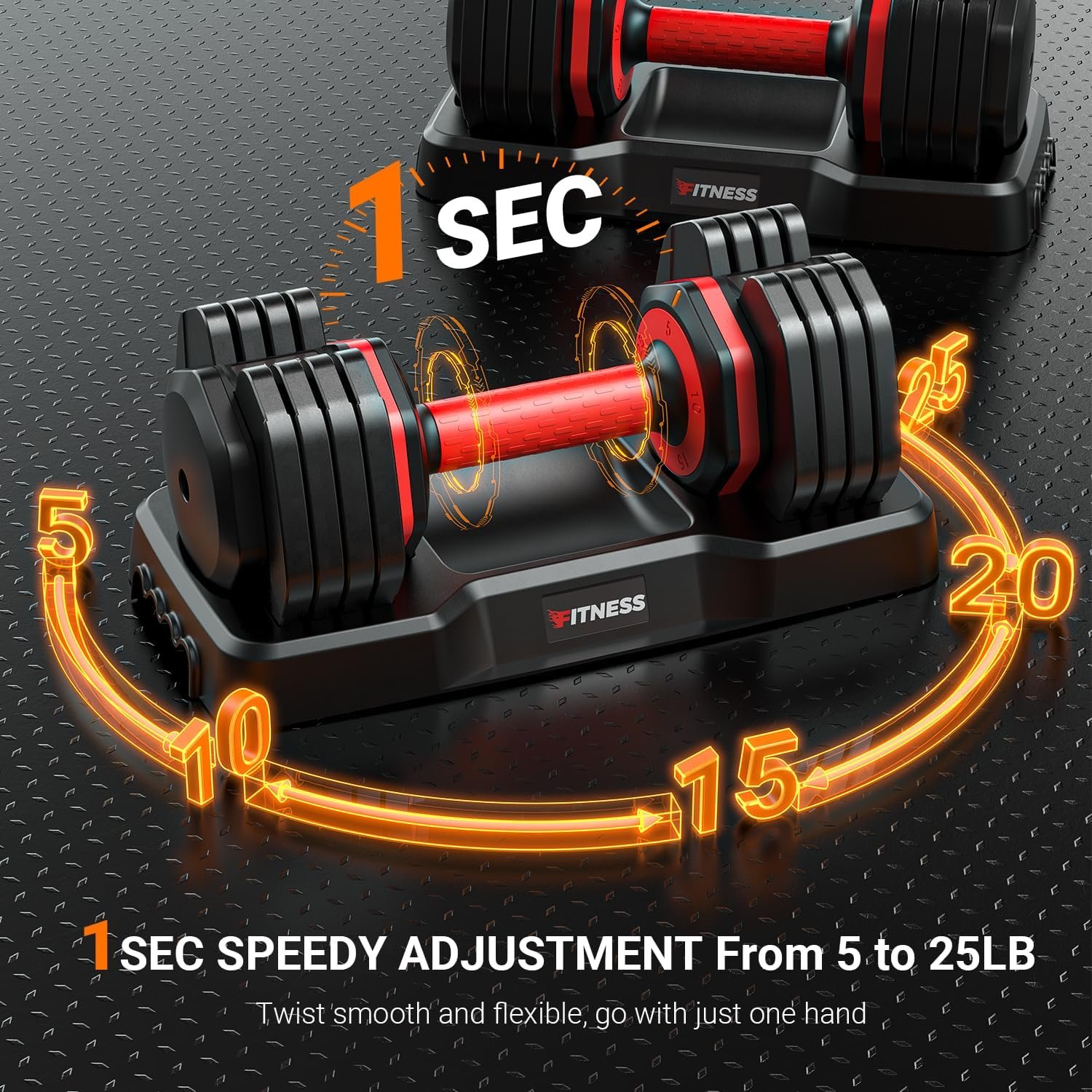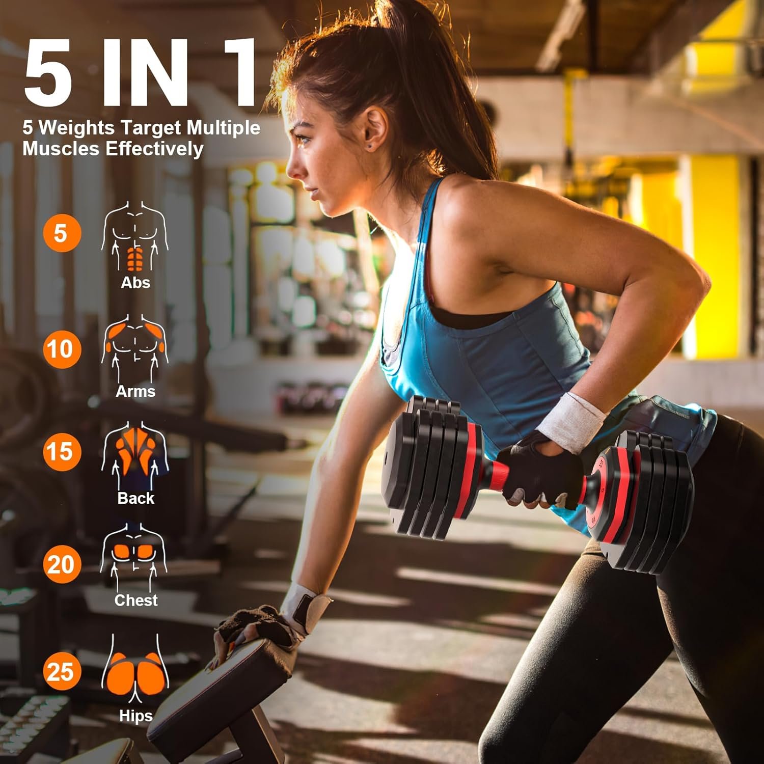5 Weights in 1 Adjustable Dumbbell: Rendpas Adjustable Weights Dumbbells Set offers a comprehensive weight range with a 5-in-1 system that can meet different workout needs; This adjustable dumbbell set can be rotated between weights ranging from 5 lbs to 25 lbs, increasing by 5 lbs with each turn, taking you from beginner to advanced levels and providing a comprehensive range of weights