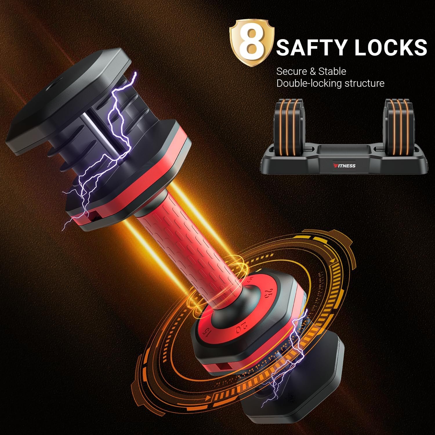Secure Double-locking System: Rendpas Adjustable weights dumbbells feature a double-locking system that secures the dumbbells’s plate in the right place, preventing them from sliding or falling off during use. This system ensures a safe and interruption-free workout experience.