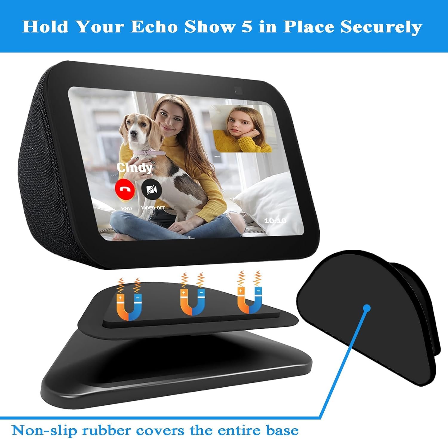 Adjustable Stand for All-new Echo Show 5 (3rd Gen), Smart Display Magnetic Stand Mount Compatible with Echo Show 5 (3rd Gen, 2023 release), with 360 Degree Rotation Tilt and Anti-Slip Base (Black)