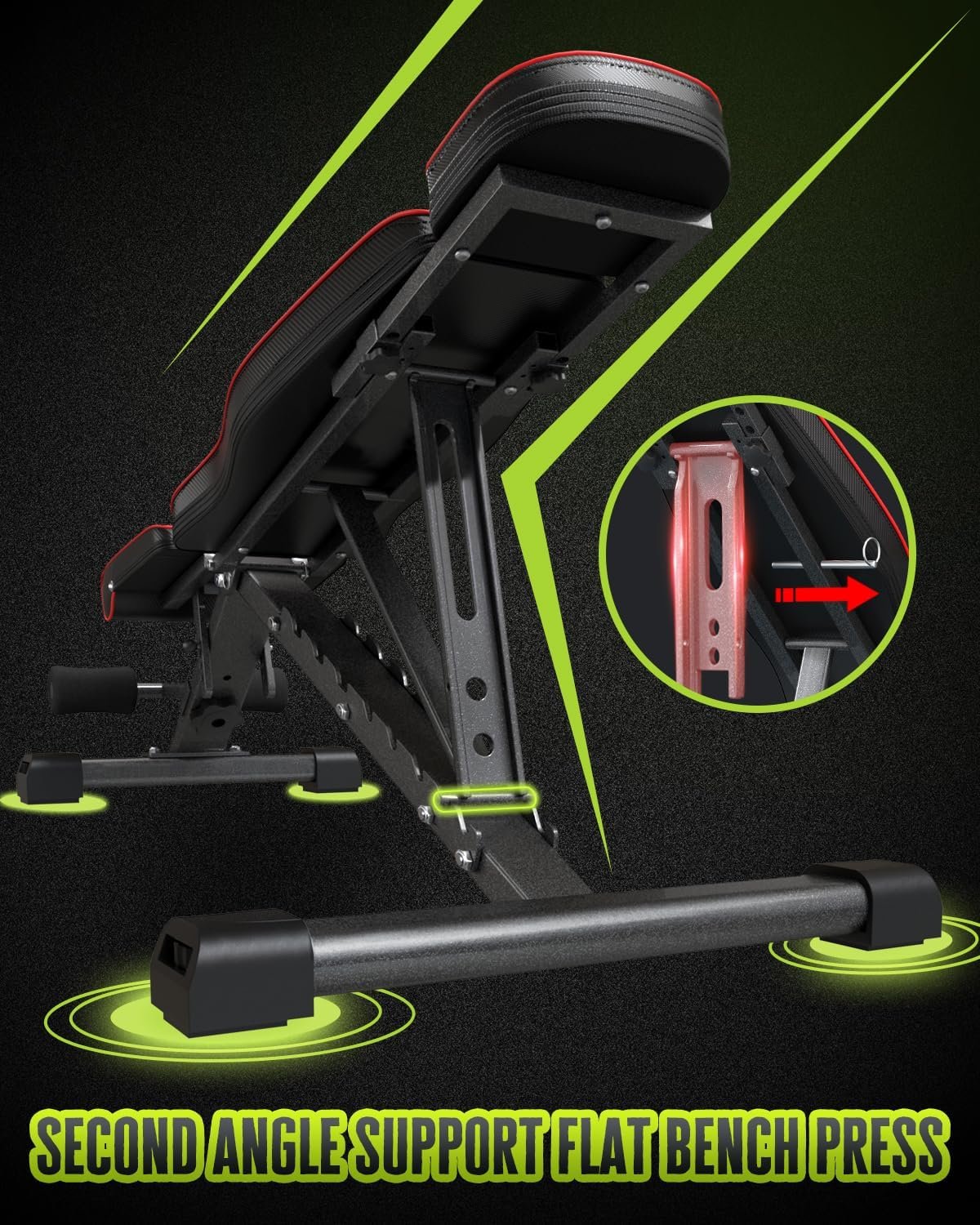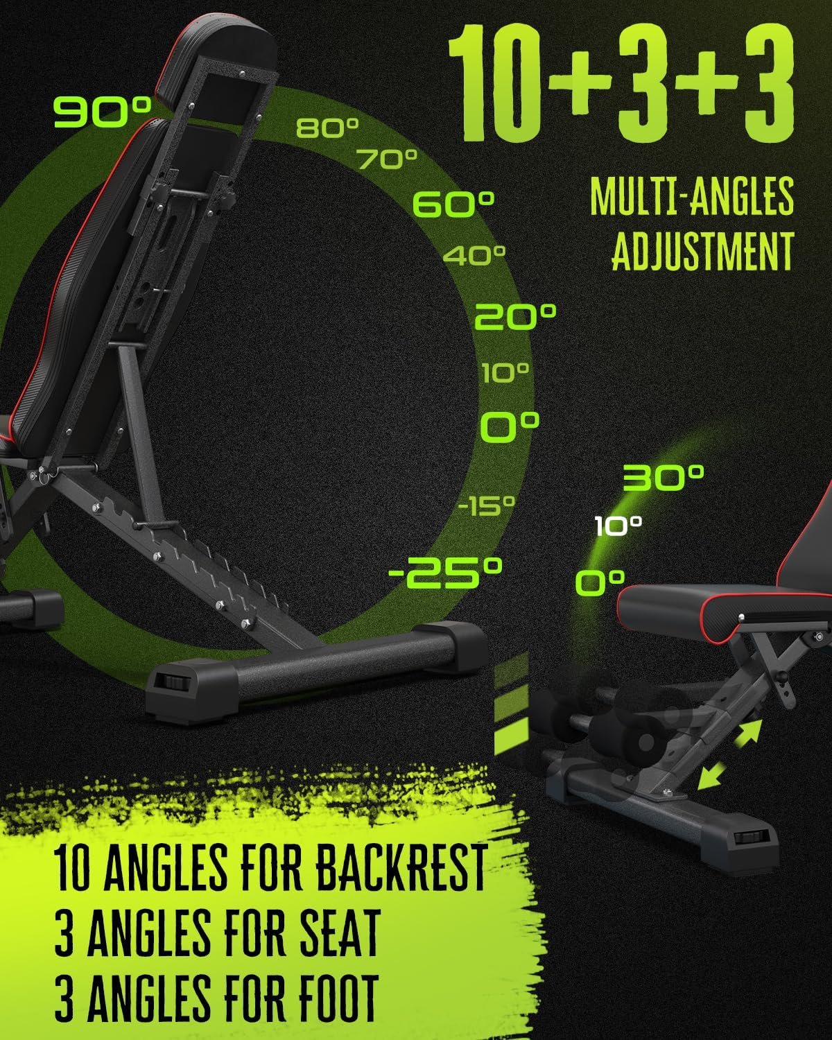 Adjustable Weight Bench for Bench Press, 880LBS Stable Workout Bench with Bench Press Rod/Extended Head, Foldable 90 Degree Weight Benches for Home Gym, Incline/Decline Bench Exercise Bench