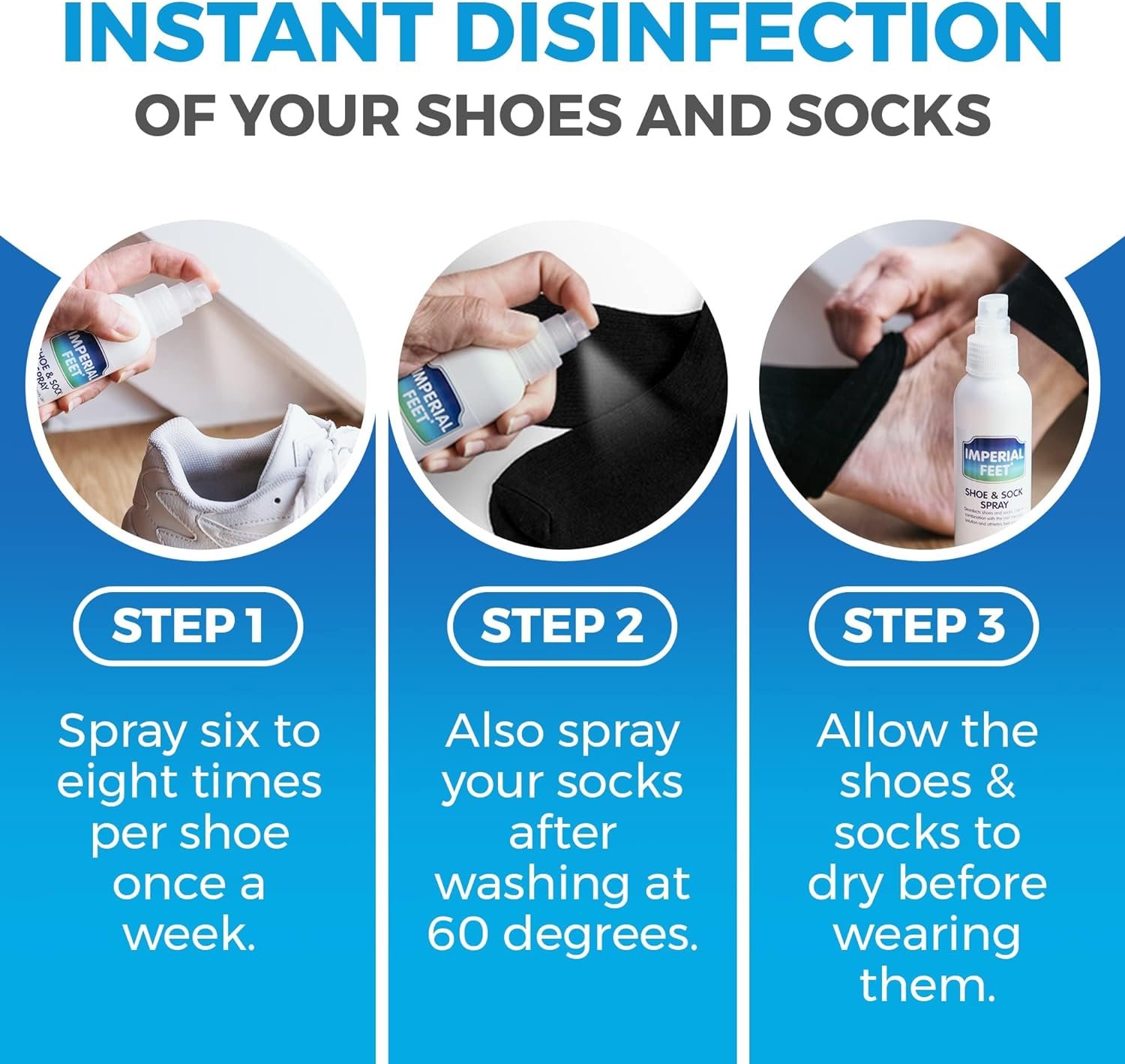 Essential During Athlete’s Foot Treatments or Yellow Nail Treatments: Without this spray, your socks & shoes would recontaminate your foot.