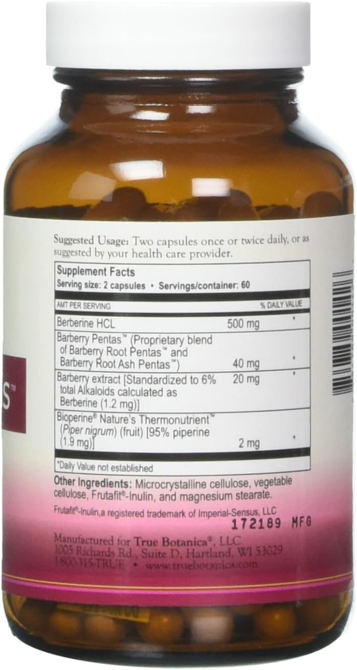 A uniquely full spectrum berberine product. Contains all of the barberry herb’s natural components, a high concentration of its main active ingredient berberine, plus the plant’s natural salts and minerals. Bioperine included in order to further enhance bioavailability.* Contains no milk, eggs, fish, Crustacean shellfish, tree nuts, peanuts, wheat, or soybeans. Vegetarian capsules.