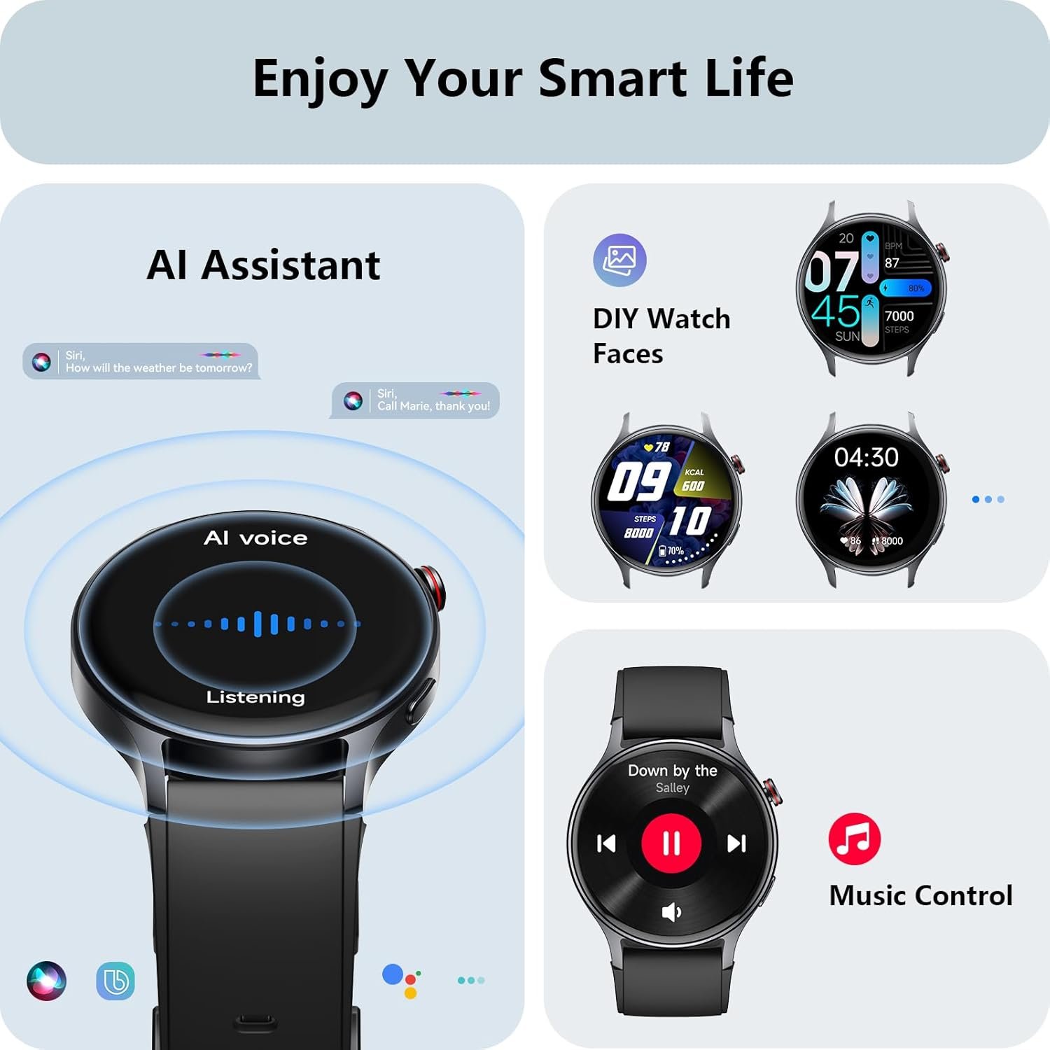 【Crystal-Clear Communication】AEAC smartwatch delivers clear call quality with high-definition speakers and microphones. Built with an AI assistant, it enables smooth voice commands and hands-free calls.