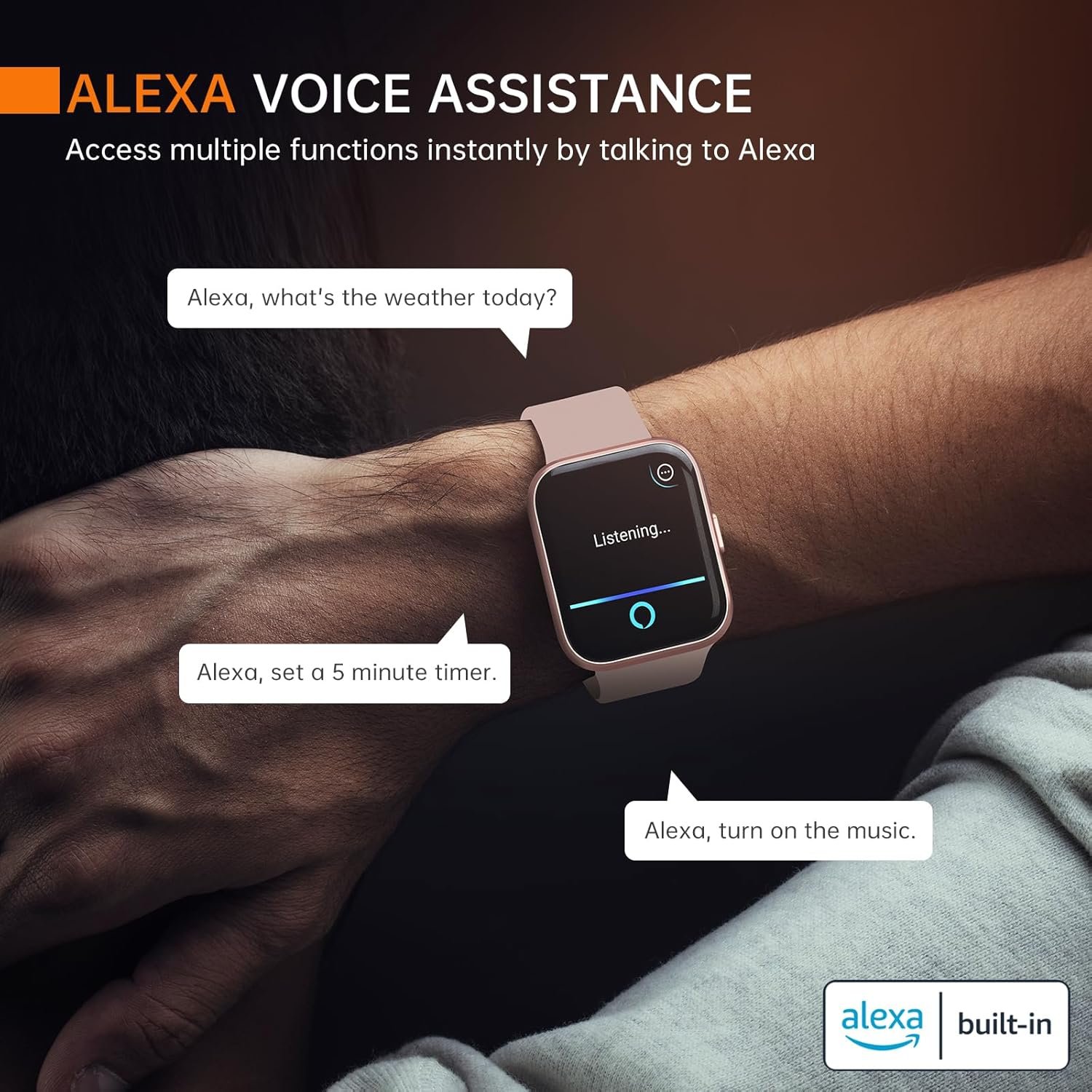 ⌚ 【Alexa Built-in】The smart watch built-in Alexa Voice Assistant. Use your voice to control the built-in Alexa in your smartwatch to control the music playback, ask questions, read the news and get information, check the weather, set alarms, control compatible smart home devices, and more. It makes things on your wrist simple and easy, and will always work as your effective daily assistant.
