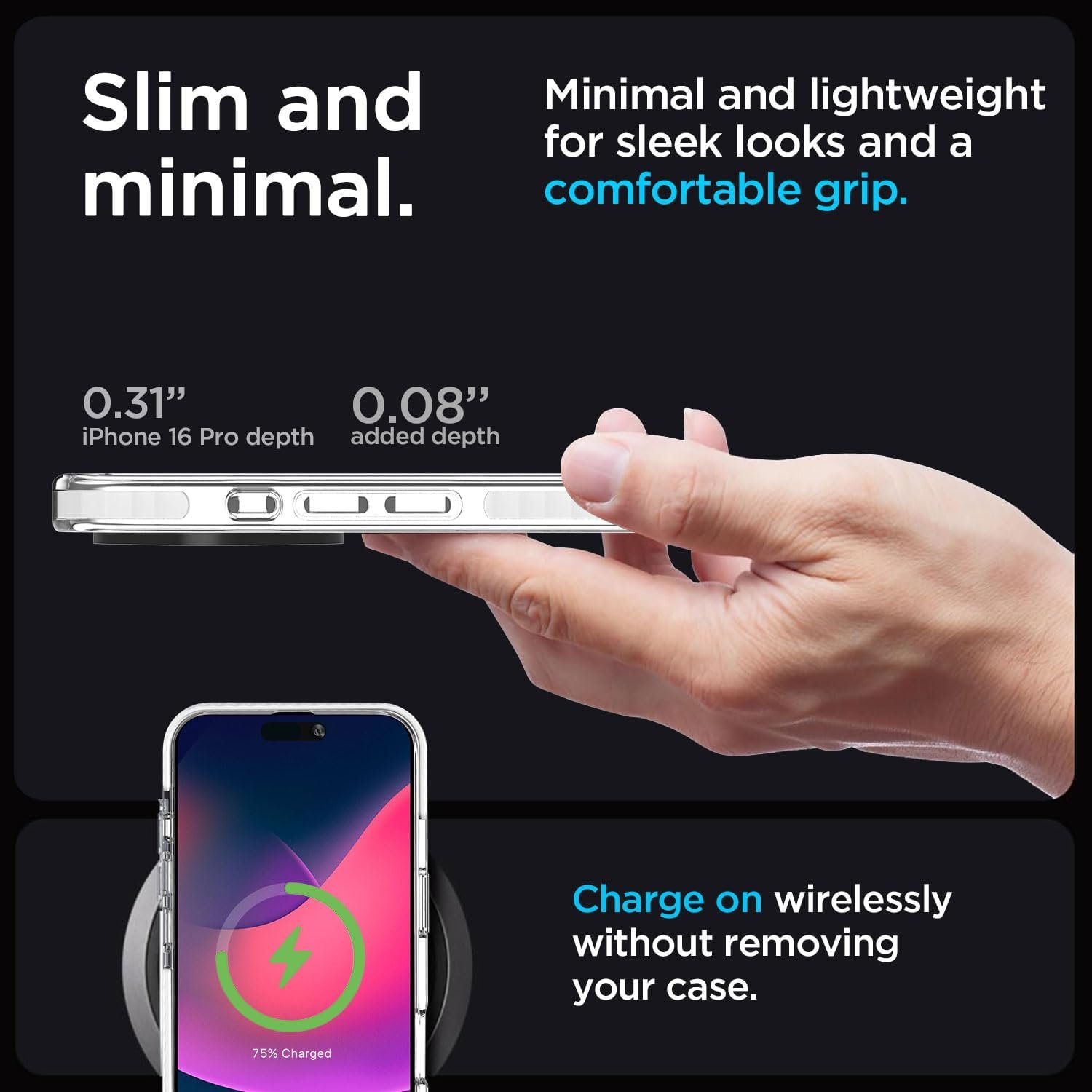 STRONGER MAGNETIC LOCK: Perfect fit Compatible with iPhone 16 Pro, powerful built-in magnets with 1,500 g of holding force enable faster, easier place-and-go wireless charging and a secure lock on any MagSafe accessory