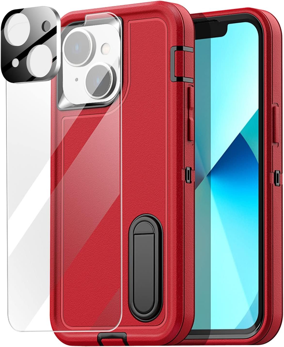 [SHOCKPROOF CASE FOR iphone 13]: Compatible for iphone 13 6.1 inch (2021).A 24-Month manufacturer’s warranty is promised.Contact us for any issues regarding our iphone 13 stand phone case. PACKAGES: 1x iphone 13 stand case + 1x tempered glass screen protectors+Camera Lens.A satisfactory solution to your problem is always available.