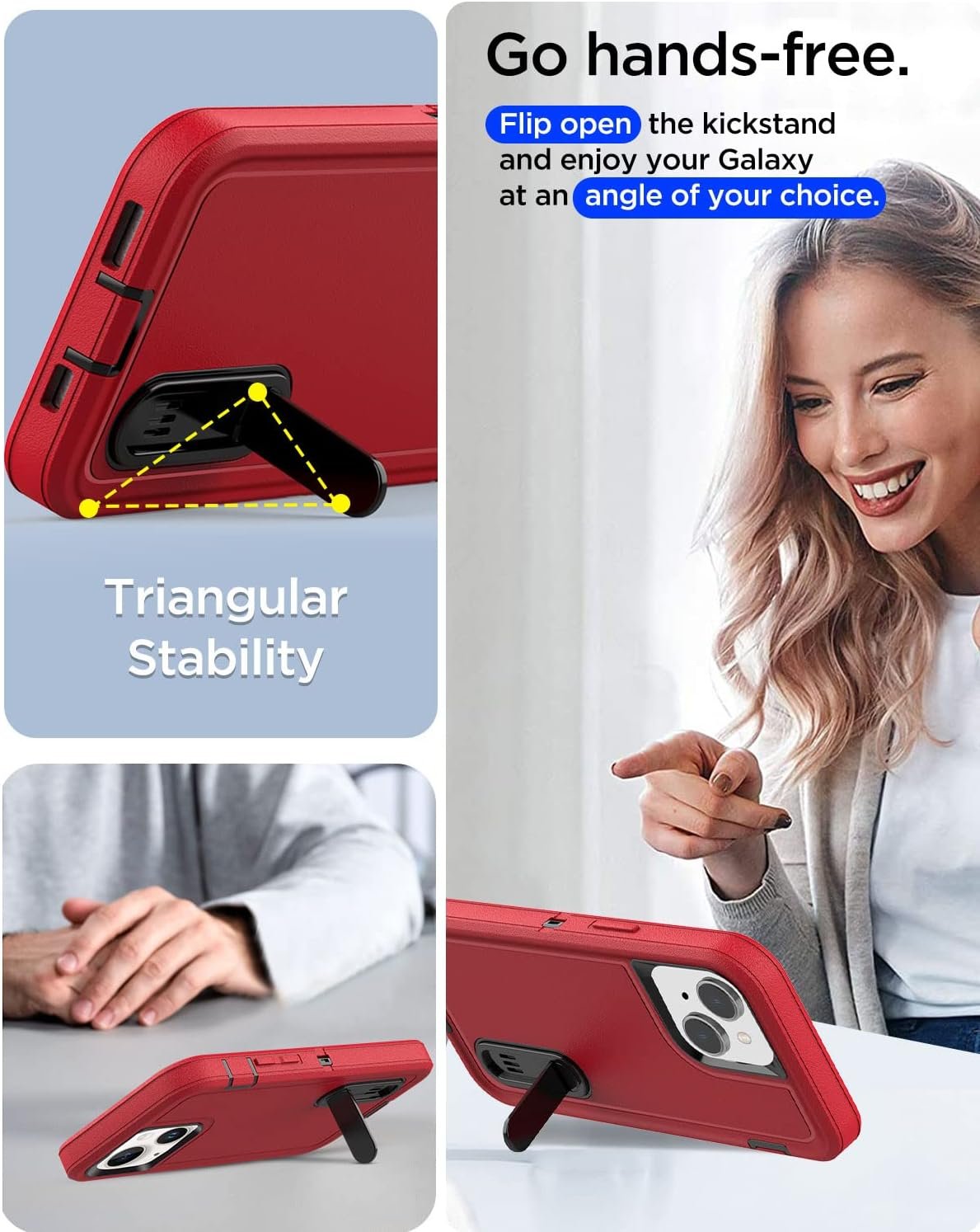 [Compatible with iphone 13 with Built-in Hidden Stand]:special designed for iphone 13(6.1-inch) 2021 release.Combining a hidden stand, and secure protection, Folded up flush with the back, the embedded kickstand avoids the embarrassment of your phone getting stuck in your pocket.Soft inner and hard outer layers absorb and deflect impacts, Everything you need for optimal protection of every aspect of your iphone 13 is all in one place with this case!